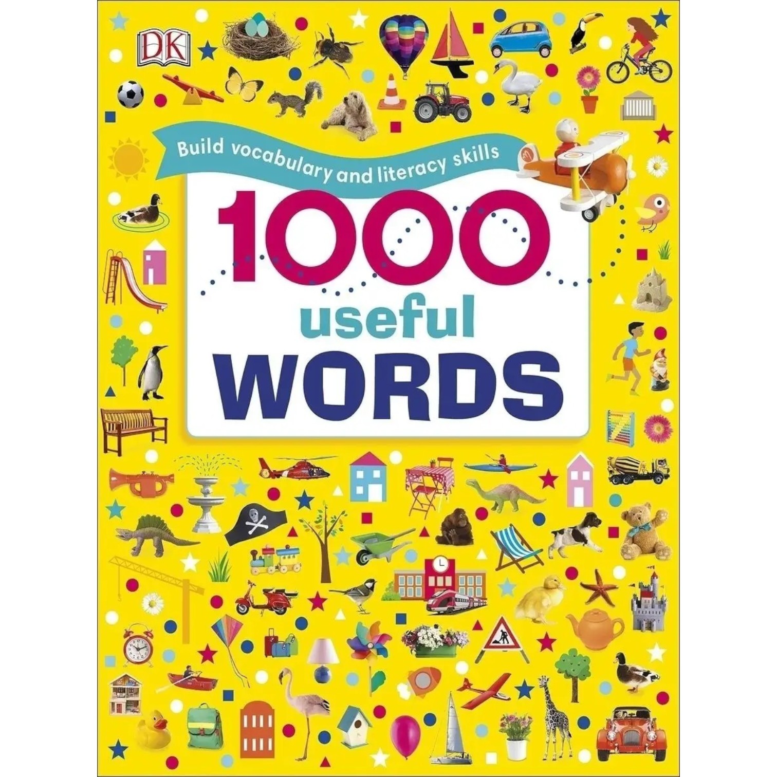 Книга 1000 Useful Words Build Vocabulary and Literacy Skills с яркими картинками для малышей с 3 лет знакомит со словами английского языка. Помогает развивать словарный запас, навыки чтения и письма с самого раннего возраста. Лексика представлена во множестве тематических разделов: «Я и моя семья», «Животные», «Вокруг света», «Погода и времена года». Забавные истории, красочные иллюстрации и простые фразы делают обучение веселым и легким. Книга увлечет ребенка и подготовит к успешному началу обучения в школе.