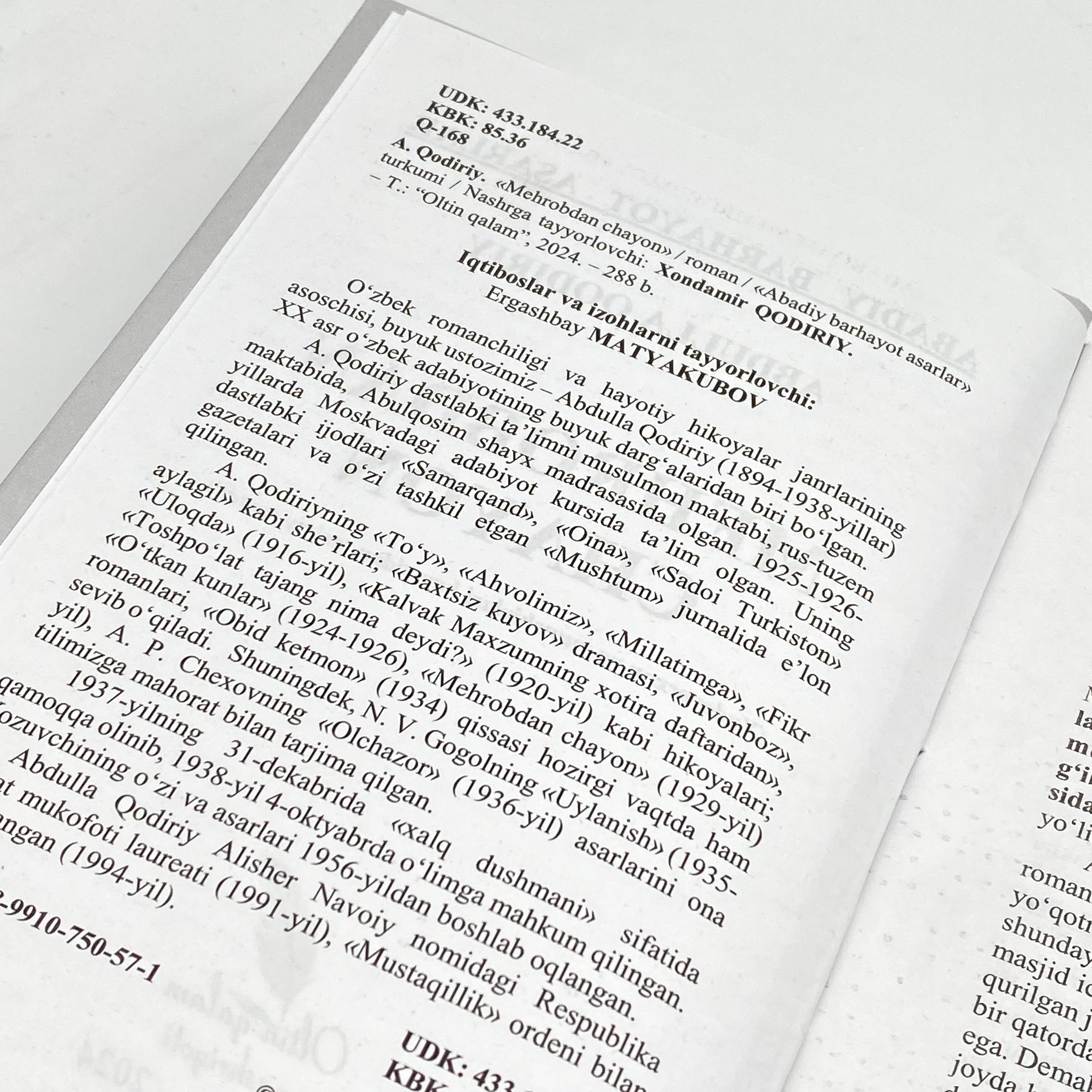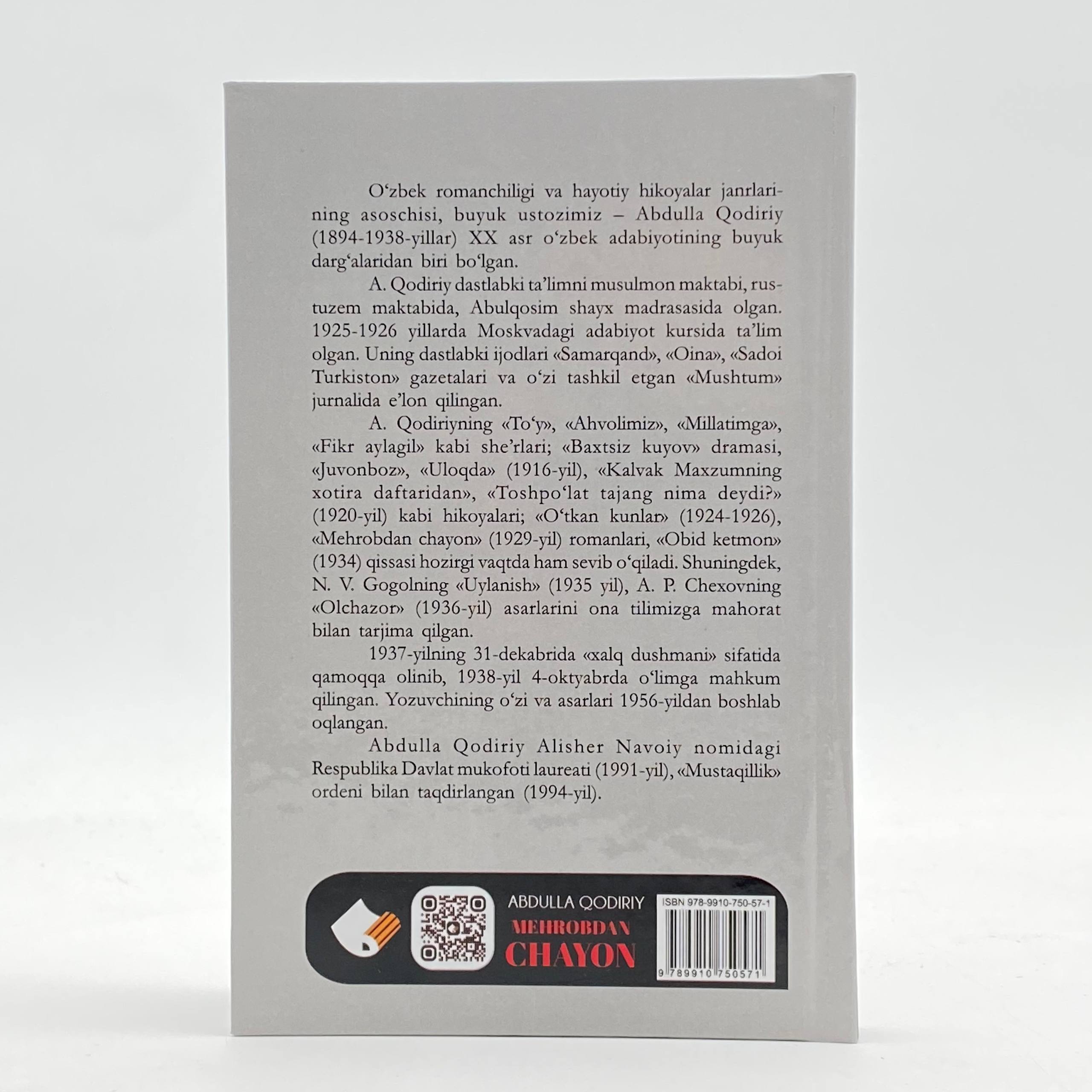Қўлингиздаги муаллифнинг "Меҳробдан чаён" асари ёзилганига қарийб бир аср бўлган эрса-да, роман ҳамон мутолаасеварларнинг севимли асарларидан бири бўлиб келмоқда. Шу боис бугун сиз, азиз китобхонни, Анвар ва Раънонинг бадиий бўёқларда тараннум этилган соф муҳаббатига яна бир бор ошно бўлишга таклиф этамиз.
