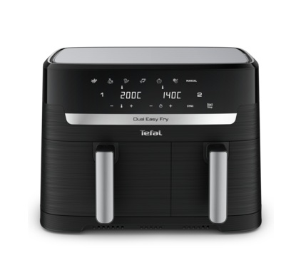 Tefal EY901840 — это современный аэрогриль с увеличенной мощностью 2700 Вт и общей вместимостью 8,3 л, который позволяет готовить сразу несколько блюд одновременно. Благодаря системе из двух чаш (5,2 л + 3,1 л) вы можете сочетать разные продукты и режимы приготовления, экономя время и электроэнергию.