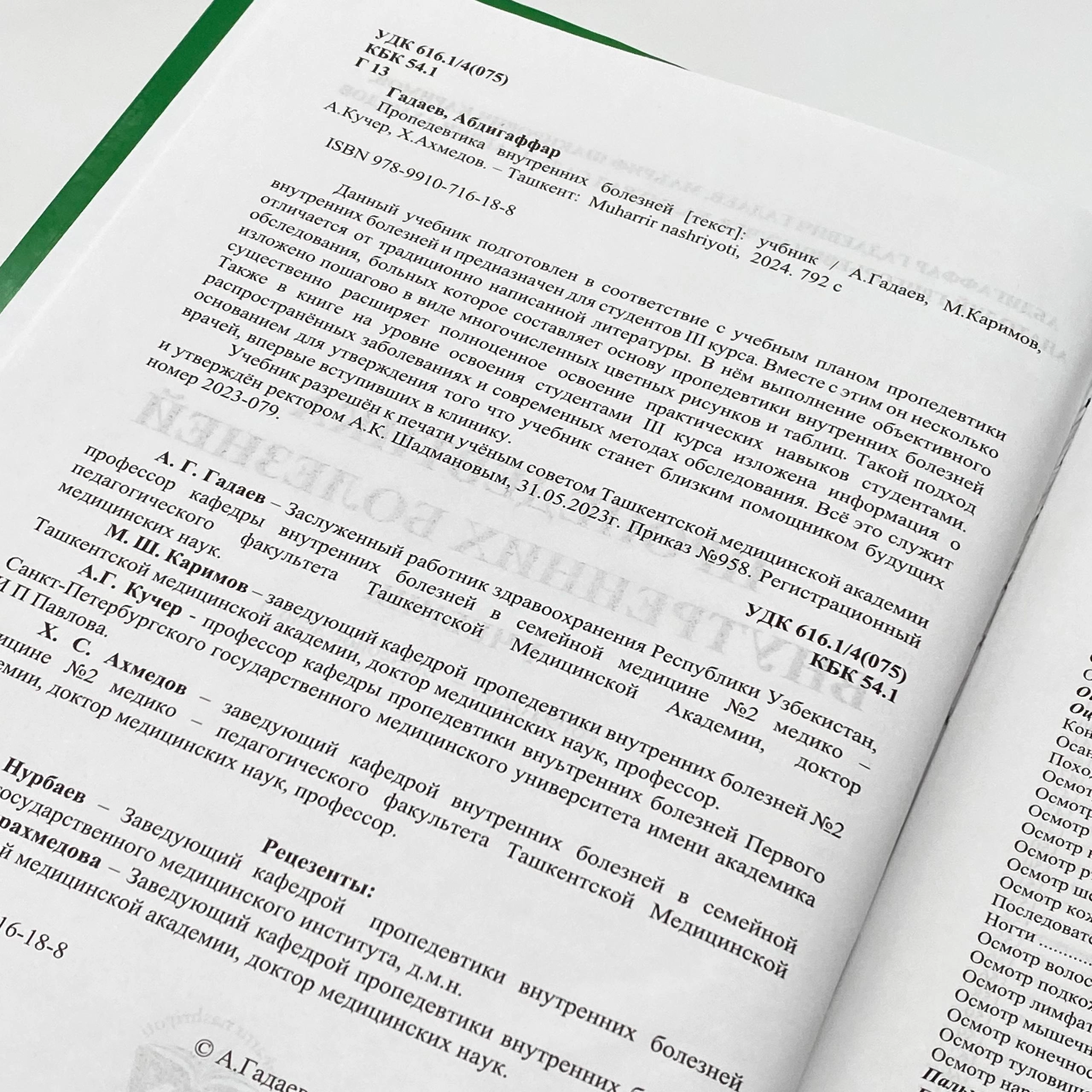 А.Г. Гадаев, М.Ш. Каримов, А.Г Кучер, Х.С. Ахмедов: Пропедевтика внутренний болезной sizga ma’qul kelmadimi, yoki hali ham ikkilanyapsizmi? Mutaxassislarimiz tanlov qilishda sizga yordam beradi. Keling, mutaxassis bilan bog‘lanib, fikrini tinglaylik.