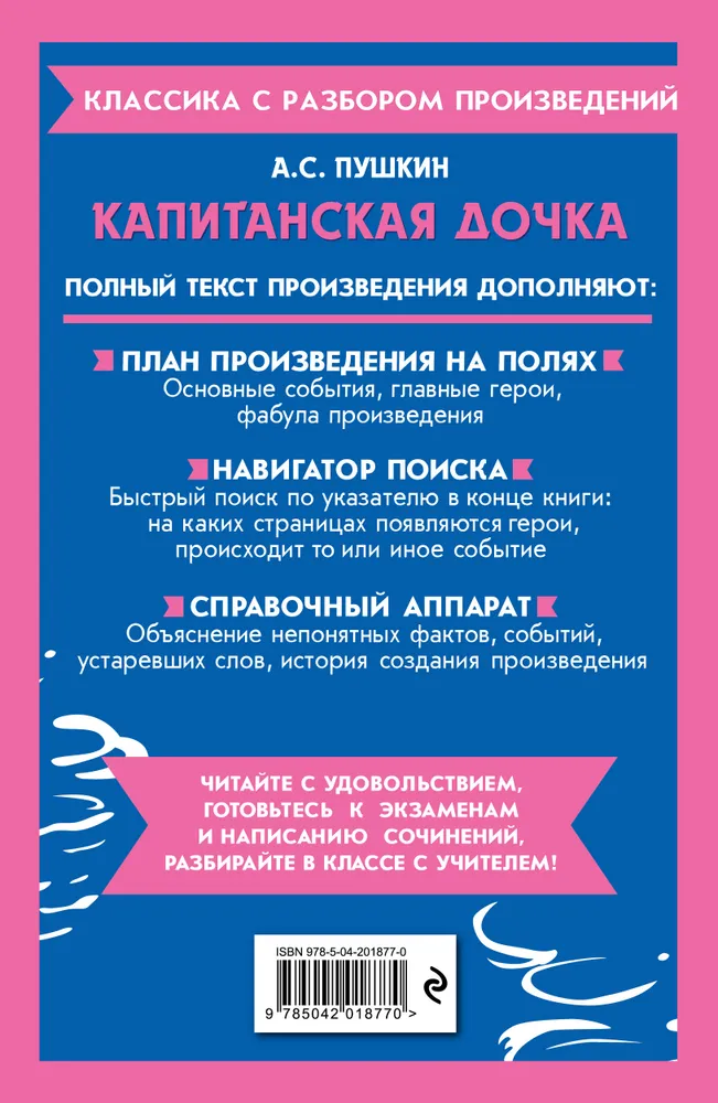 «Капитанская дочка» — легендарное произведение русской литературы, написанное в жанре исторической повести великим поэтом первой трети XIX века А. С. Пушкиным. Эта гениальная книга до сих пор пользуется большой популярностью как среди школьников, так и среди старших поколений. Новое издание повести станет незаменимым помощником в подготовке к ЕГЭ, ОГЭ и урокам литературы. В нем вы найдете уникальные справочные материалы: заметки на полях для быстрого поиска нужного фрагмента, развернутые комментарии, где объясняются устаревшие слова и непонятные факты, историю создания произведения, указатель имен и событий. Все это поможет не только быстро и легко подготовиться к экзаменам, но и узнать новые факты, которые можно было упустить на уроке. В произведении рассказывается о молодом офицере Петре Гриневе и его возлюбленной Маше Мироновой, которые оказываются вовлечены в трагические события, разворачивающиеся во время крестьянского восстания Емельяна Пугачева. История изобилует романтическими приключениями, героическими поступками и описывает «русский бунт, бессмысленный и беспощадный».