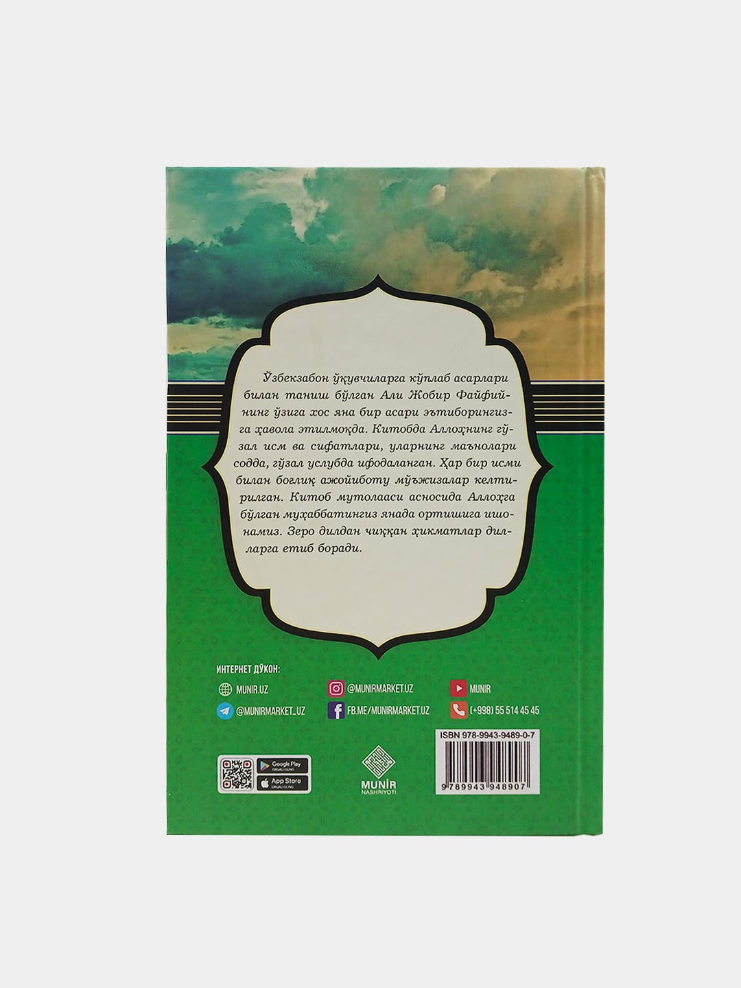 Ўзбекзабон ўқувчиларга кўплаб асарлари билан таниш бўлган Али Жобир Файфийнинг ўзига хос яна бир асари эътиборингизга ҳавола этилмоқда. Китобда Аллоҳнинг гўзал исм ва сифатлари, уларнинг маънолари содда, гўзал услубда ифодаланган. Ҳар бир исми билан боғлиқ ажойибот ва мўъжизалар келтирилган. Китоб мутолааи асносида Аллоҳга бўлган муҳаббатингиз яна-да ортишига ишонамиз. Зеро, дилдан чиққан ҳикматлар дилларга етади.