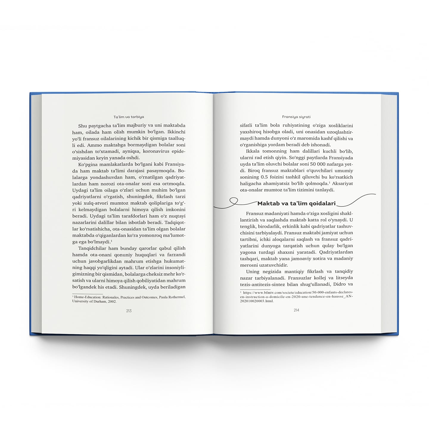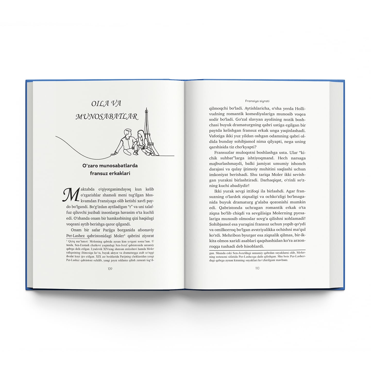 Энг муҳими, китоб қуруқ тарихий саналар ёки энциклопедик фактларга таянмайди. Унда яшаб кўрилган тарих, жонли суҳбатлар, кундалик кузатувлар ва реал ҳаёт эпизодлари жамланган. Шу боис “Франция сийрати” шунчаки ўқилмайди - у билан яшалади.