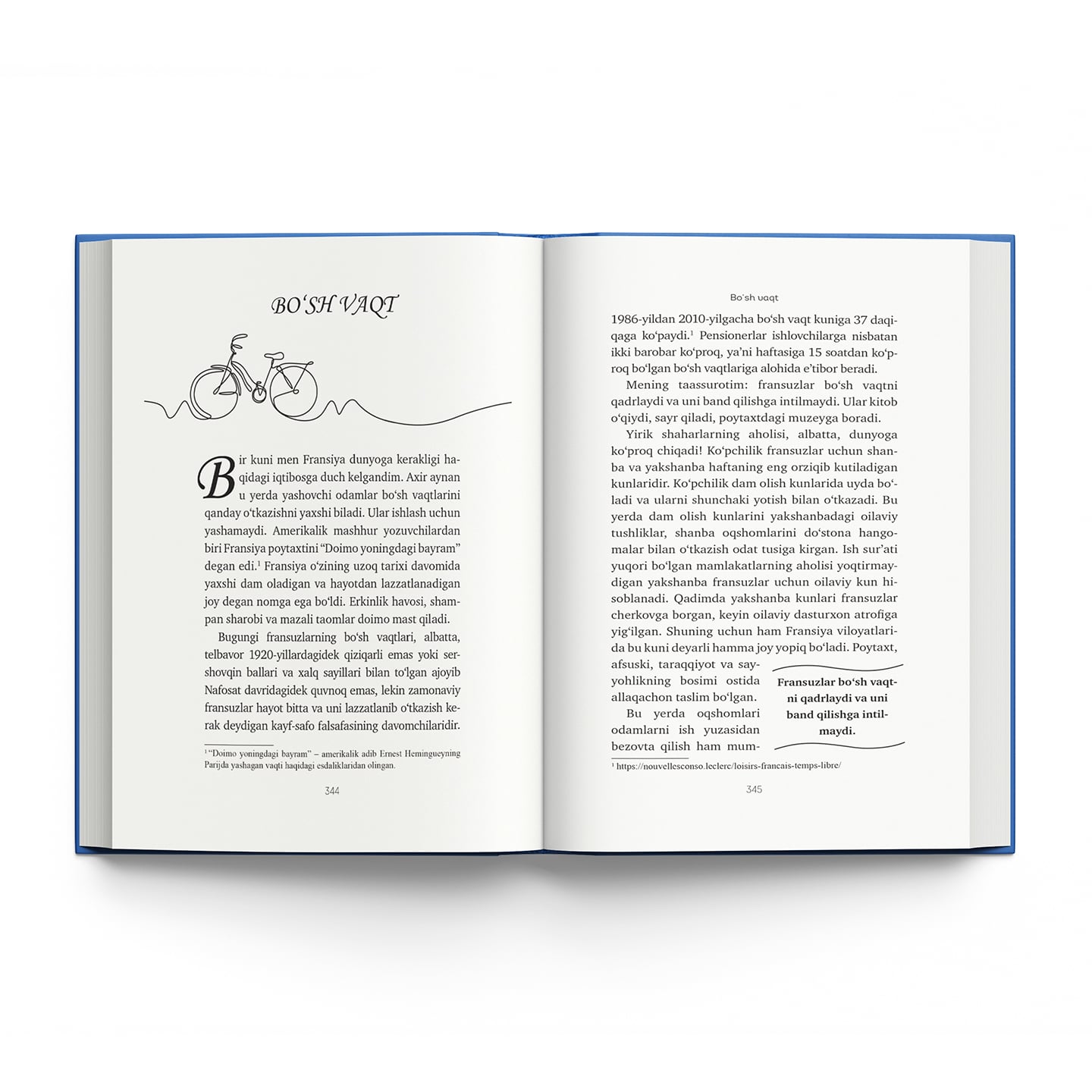 Натижада Францияни ташқаридаги томошабин эмас, балки уни ичкаридан тушунадиган, ҳис қиладиган инсон сифатида китобни якунлайсиз. Бу эса китобни оддий маданий тавсифдан кўра, фикрлашни ўзгартирувчи ва дунёқарашни кенгайтирувчи тажрибага айлантиради.