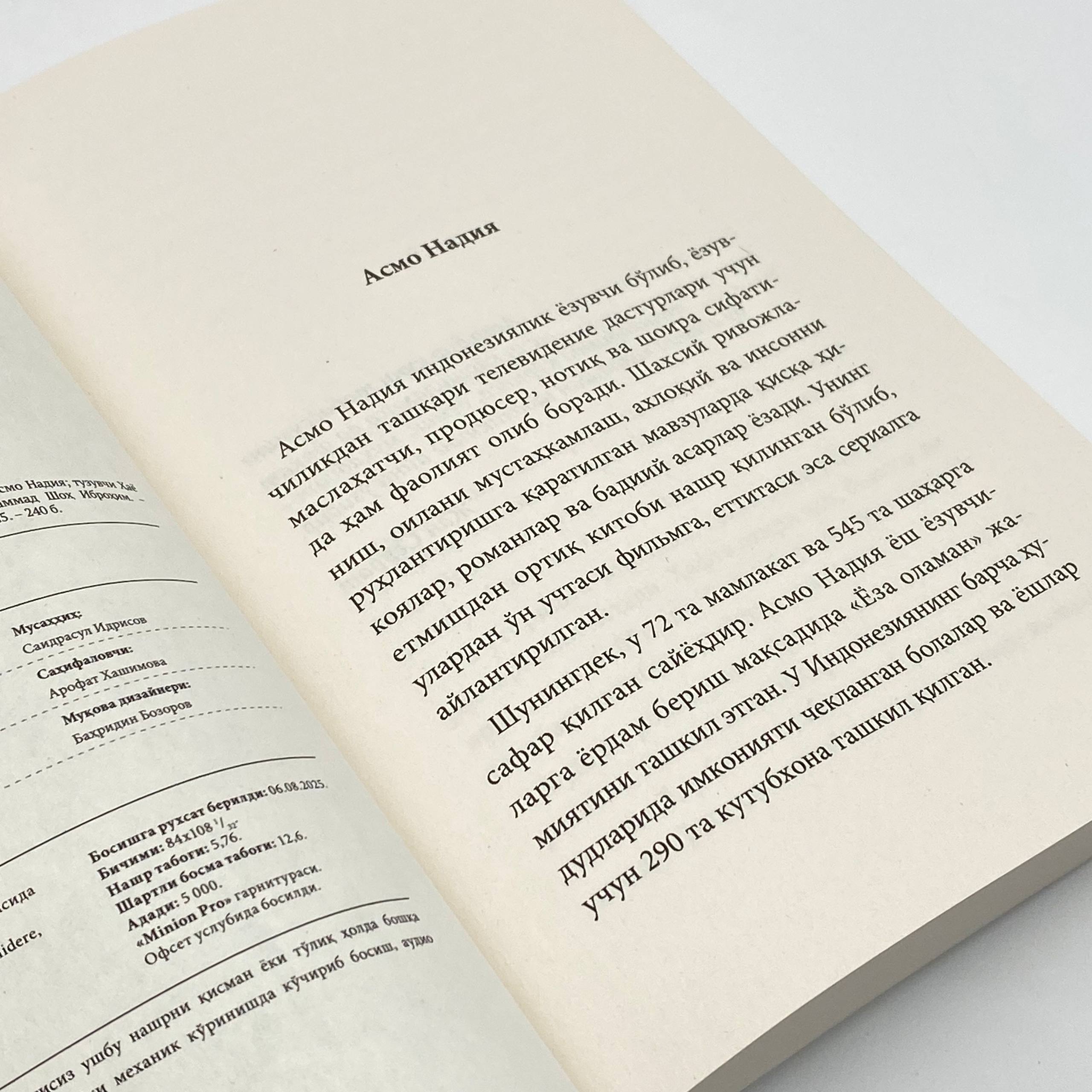 1 год гарантии от производителя Примем товары в течении 10 дней и сразу вернём деньгиСевги ҳақида кўплаб романлар ёзилган. Лекин Асмо Надиа ўзининг “Салом, Пекин!” асарида муҳаббатни фақат икки инсон ўртасидаги ҳис эмас, балки имон, сабр ва ҳаёт синовлари билан чамбарчас боғлаб беради.