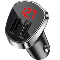 Автомобильное зарядное устройство BOROFONE BZ15 Auspicious с двумя USB-портами и цифровым LED-дисплеем, в комплекте с кабелем Lightning (AM-8pin). Позволяет одновременно подключать к зарядке два гаджета. Светодиодный цифровой дисплей отображает остаточное напряжение автомобильного аккумулятора. Имеет универсальный автомобильный вход: DC12-24V. Обеспечивает на выходе на один USB-порт или суммарно 5V/2.4A. Корпус выполнен из безопасного огнестойкого пластика. Наличие в комплекте зарядного кабеля в цвет устройства избавит от необходимости приобретать его дополнительно и делает покупку ещё более выгодной.