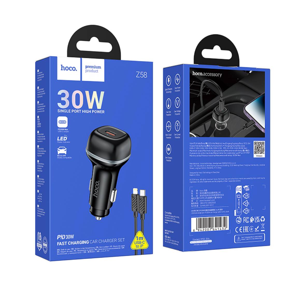 Hoco Z58 Rank 30W USB-C to iP — это практичное и стильное решение для автомобилистов, которое позволяет быстро и безопасно заряжать устройства Apple прямо в дороге.