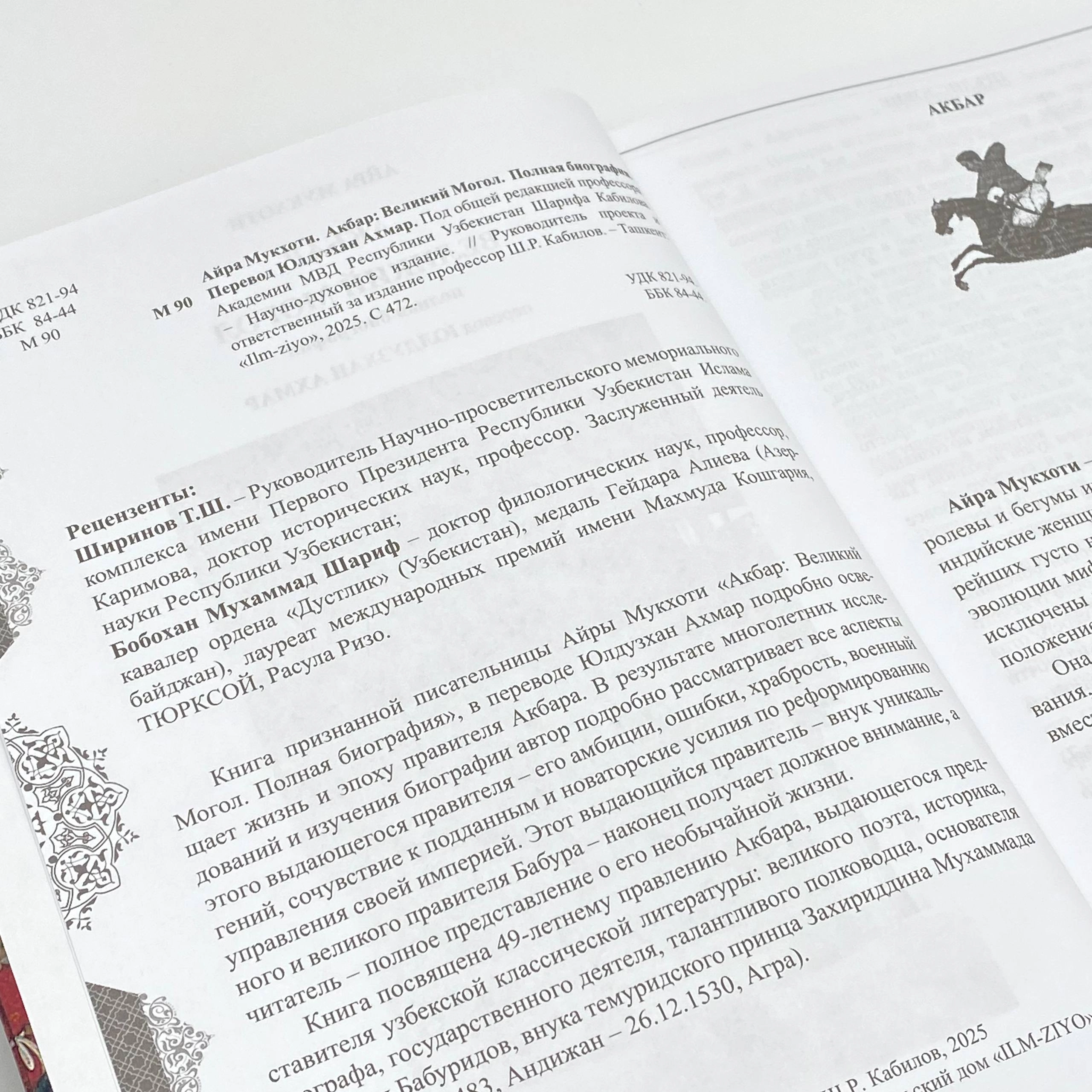 Книга признанной писательницы Айры Мукхоти «Акбар: Великий Могол. Полная биография», в переводе Юлдузхан Ахмар подробно осве-щает жизнь и эпоху правителя Акбара. В результате многолетних исследований и изучения биографии автор подробно рассматривает все аспекты этого выдающегося правителя - его амбиции, ошибки, храбрость, военный гений, сочувствие к подданным и новаторские усилия по реформированию управления своей империей. Этот выдающийся правитель - внук уникаль-ного и великого правителя Бабура - наконец получает должное внимание, а читатель - полное представление о его необычайной жизни.