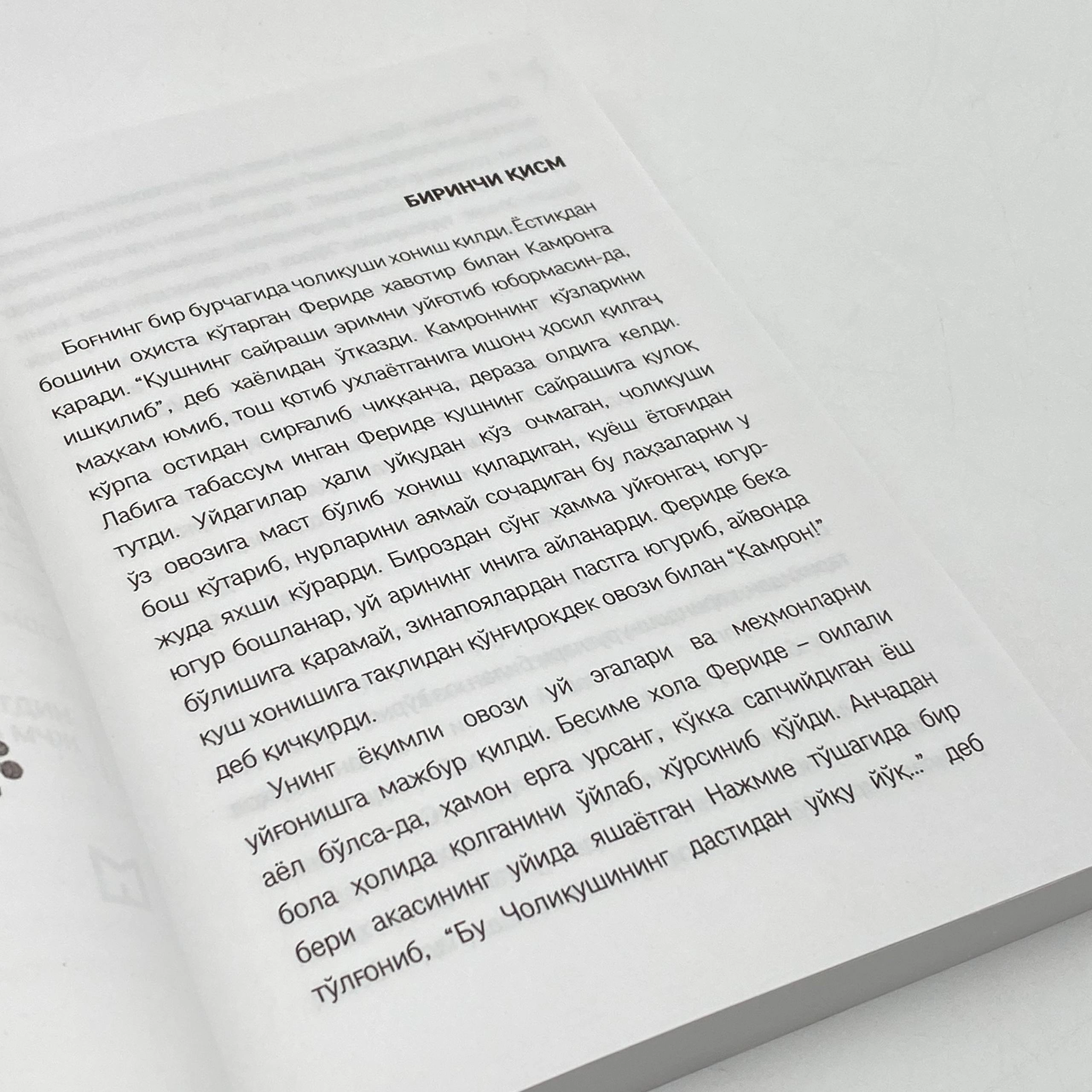 Feride bir necha daqiqa jim yotdi. Birozdan soʻng dori oʻz kuchini koʻrsatib, uyqu butun tanasini zabt etdi. Tush koʻrdi. Chuqurga yiqildi, qayerlardadir Kamron chaqirayotgandek tuyuldi. Feride koʻzlarini ochib, oʻzini gullar barq urib ochilgan oʻrmon oʻrtasidagi yalanglikda koʻrdi. Rang-barang gulgʻunchalar shamolda ohista tebranib turardi. U nimaga bunday qilayotganini tushunmagan holda gullarni uzib, guldasta yasashga tushdi. Chiroyli guldasta kattaligidan ogʻirlik qila boshladi...