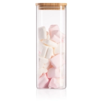 Tabiiy bambuk qopqog‘i zich yopiladi va mahsulotni namlikdan, begona hidlardan hamda hasharotlardan himoya qiladi. Borosilikat shisha yuqori harorat farqlariga chidamli, hidlarni singdirmaydi va ekologik jihatdan xavfsiz.