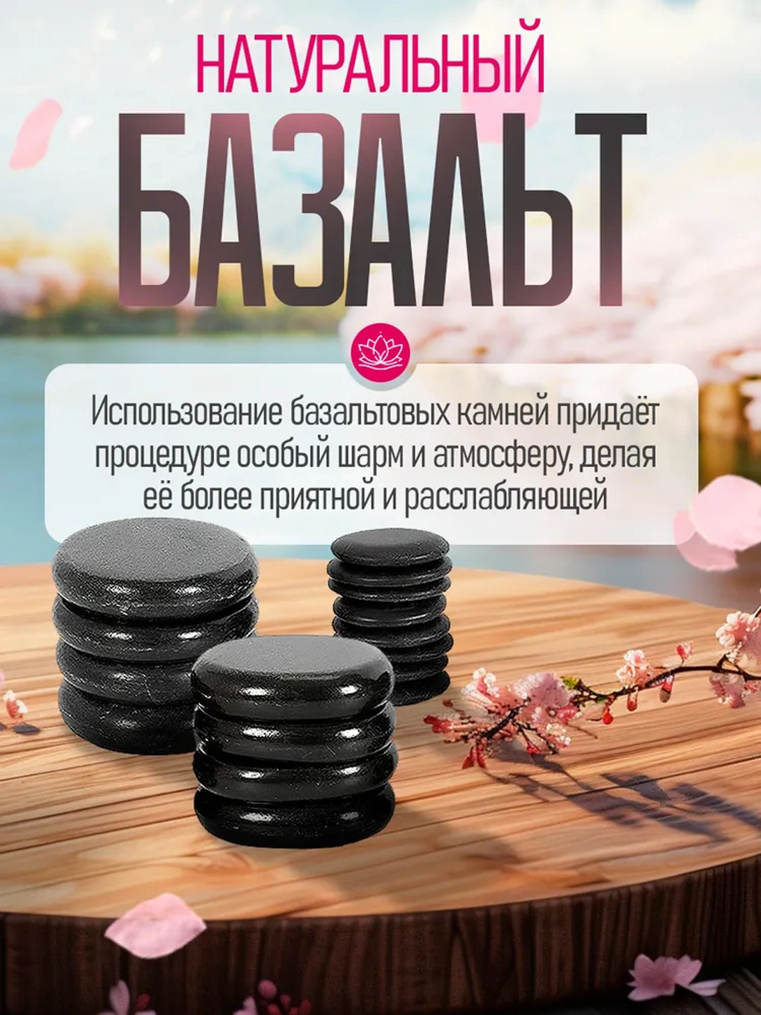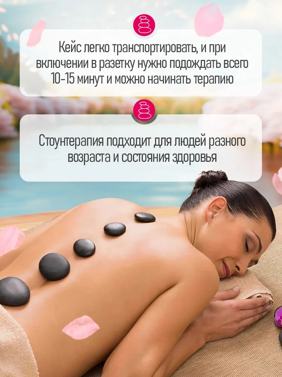 • Базальтовые камни разных размеров (от маленьких до больших) для различных частей тела.