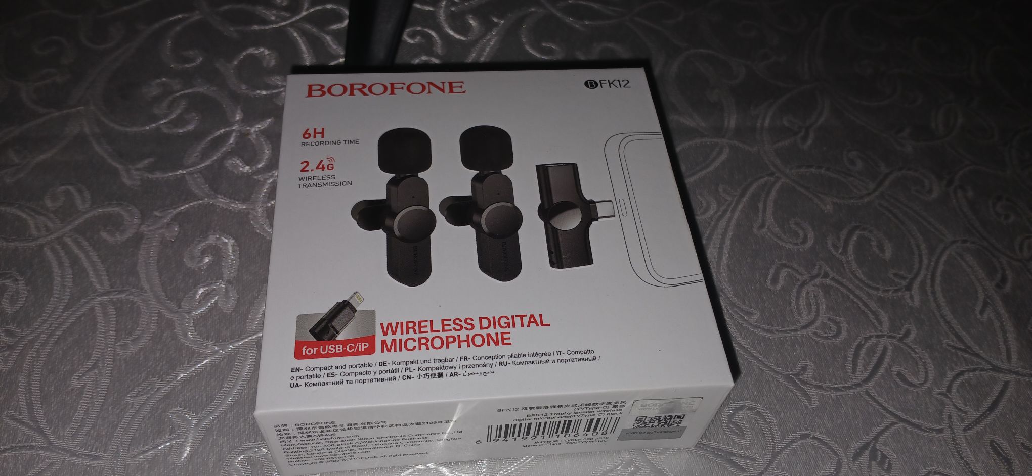 Заряжается через разъём type-С, кабель для зарядки микрофона в комплекте.