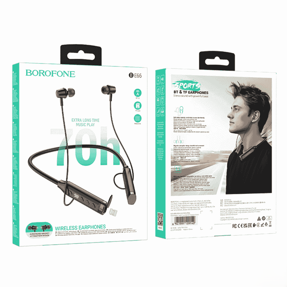 1 год гарантии от производителя Примем товары в течении 10 дней и сразу вернём деньгиBorofone BE66 Powerful — беспроводные спортивные наушники с шейной дужкой и автономностью до 70 часов