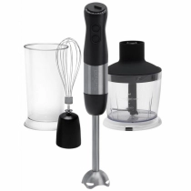 тип: погружной, максимальная мощность: 850 Вт, материал погружной части: металл, насадки: венчик для взбивания, измельчитель, в комплекте: мерный стакан, дополнительные функции: плавная регулировка скорости, режимы: турборежим, емкость измельчителя: 0.50 л, количество скоростей: 6
