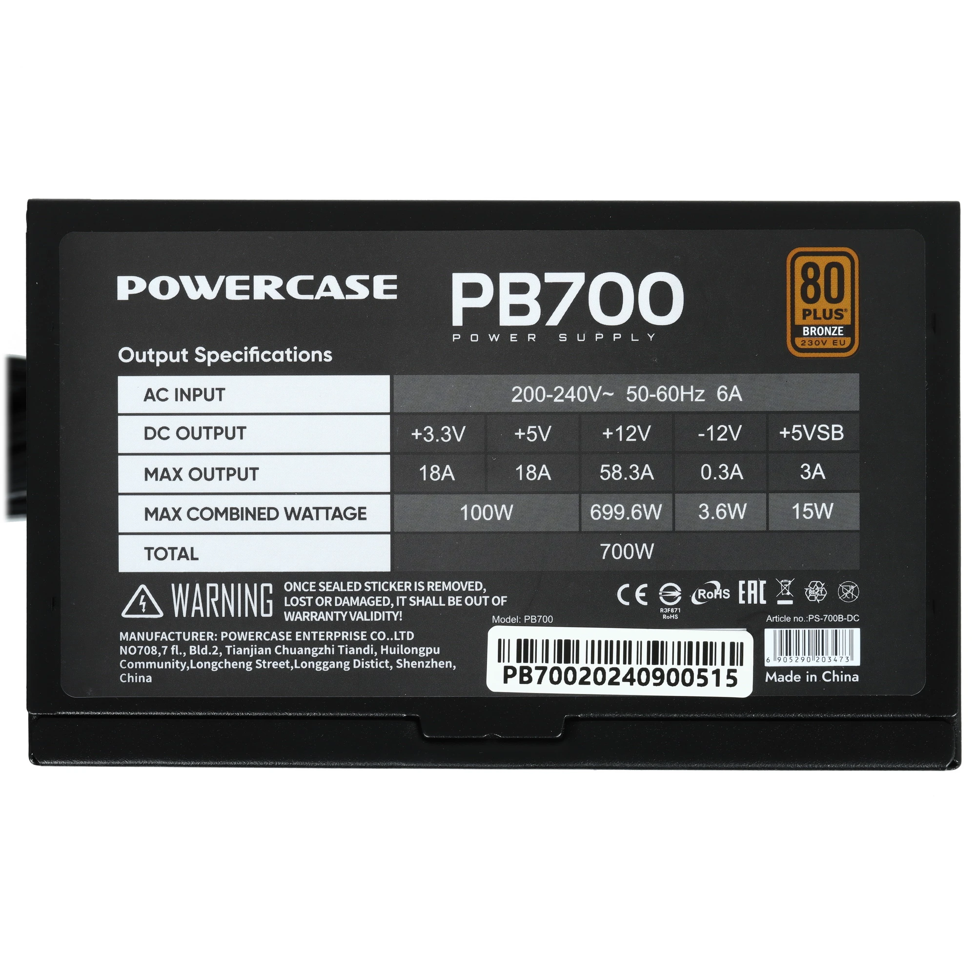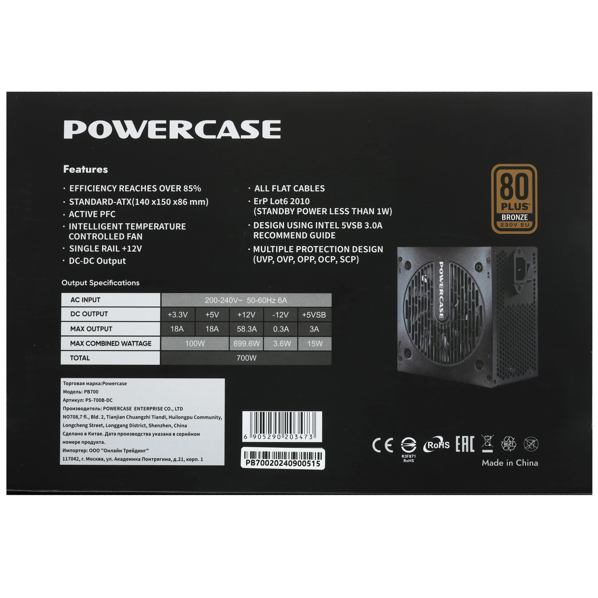 PowerCase PB700 — это мощный, энергоэффективный и надёжный источник питания для современных игровых и профессиональных ПК.