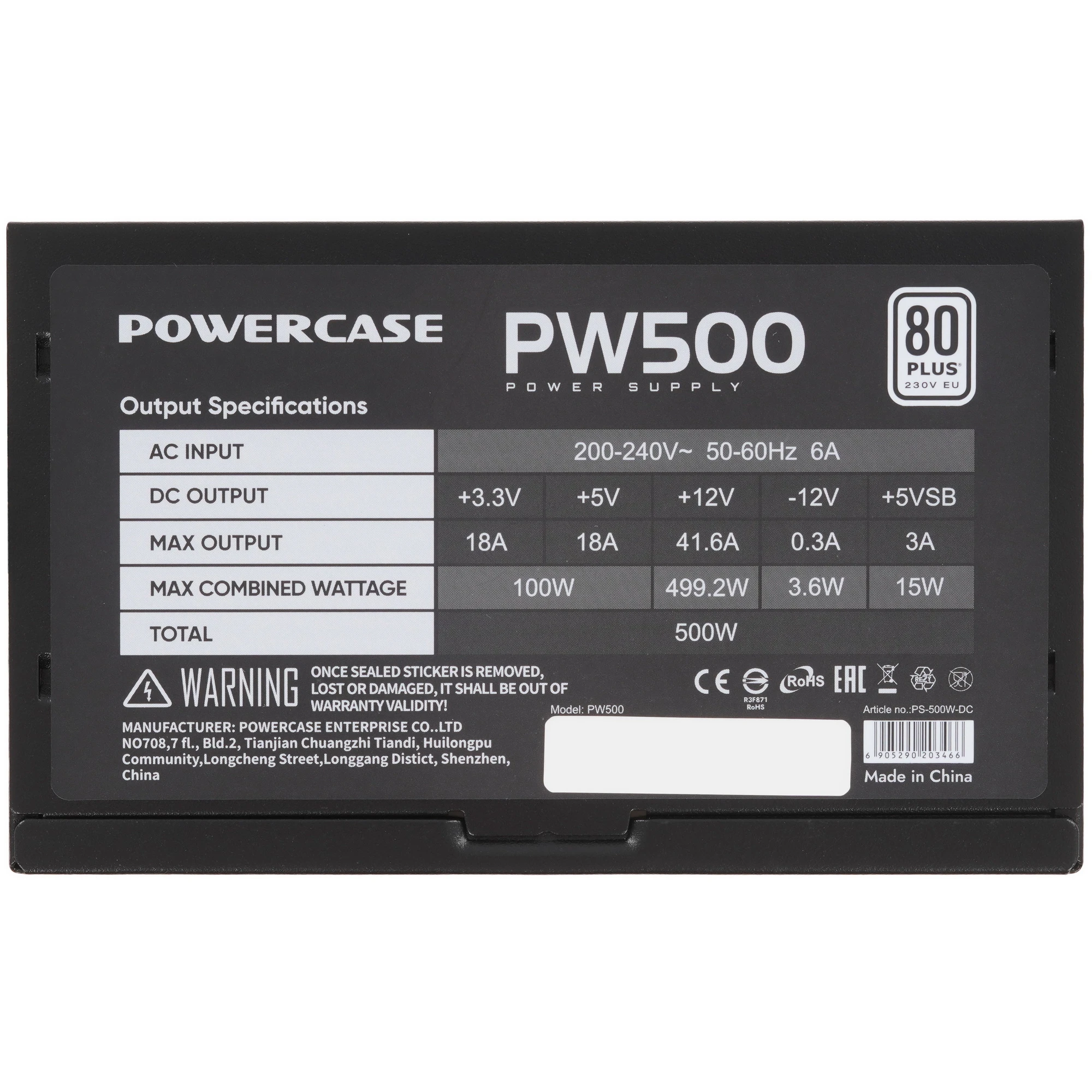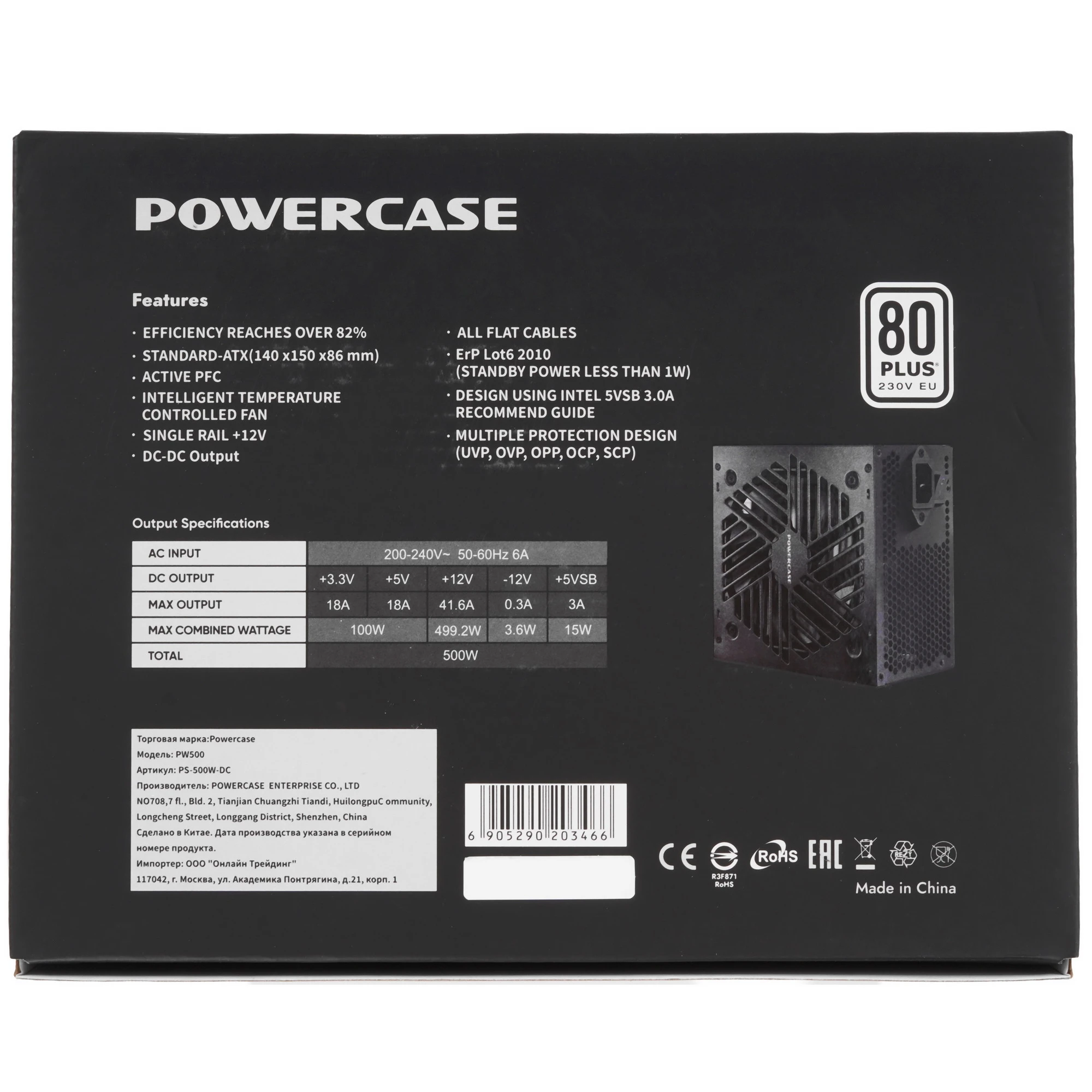 PowerCase PW500 — это надёжный ATX блок питания мощностью 500 Вт, предназначенный для домашних и игровых ПК.