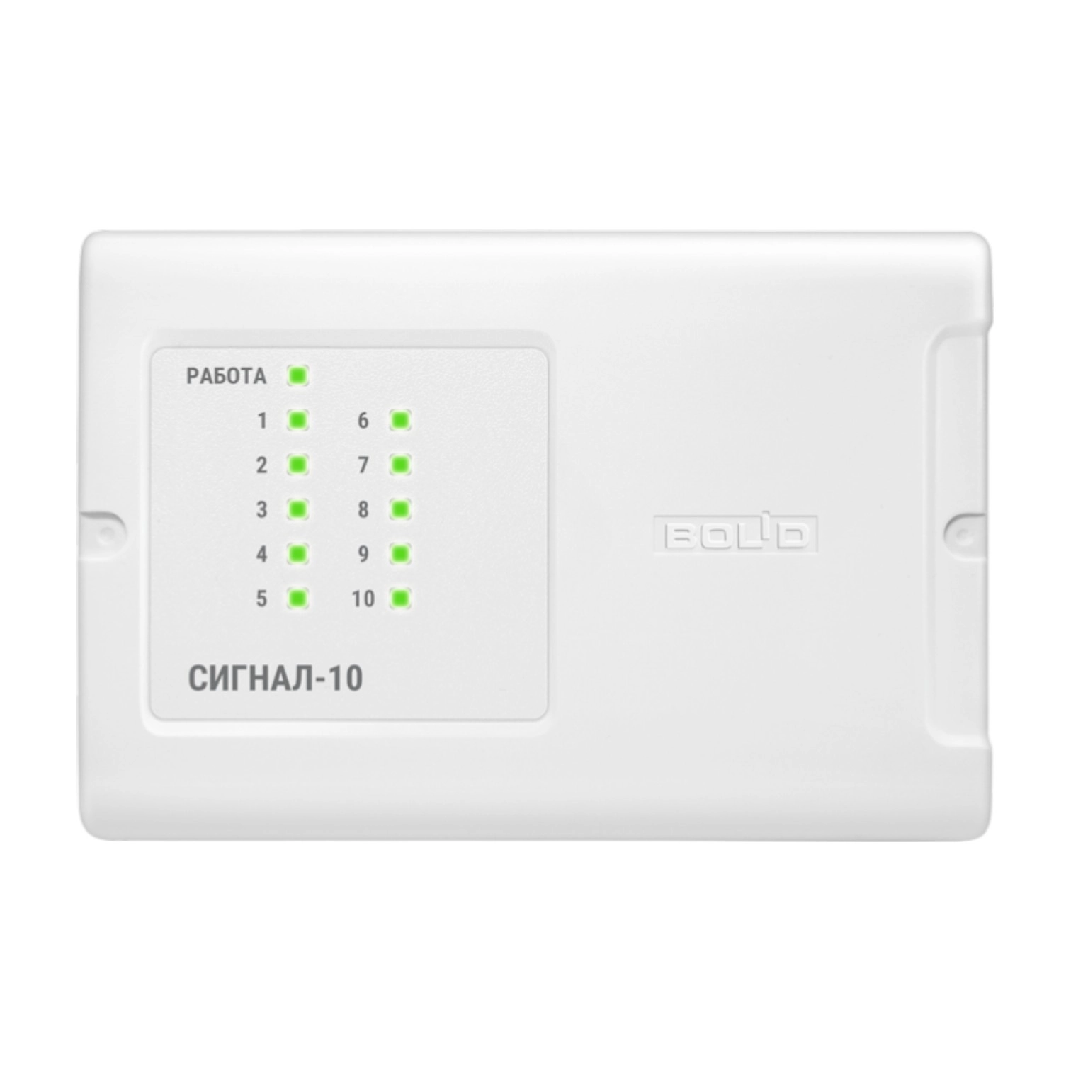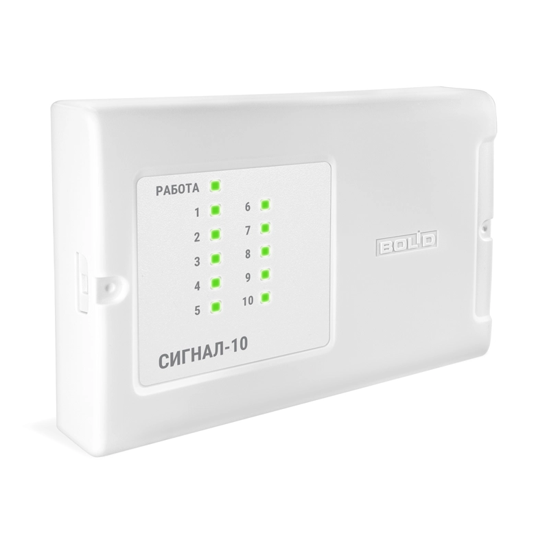 Signal-10 — bu «Orion» integratsiyalashgan qo‘riqlash tizimi (IQT) tarkibiga kiruvchi universal o‘n shleifli qurilmadir. U kam kanalli bloklar va quvvatli «Signal-20» o‘rtasidagi oraliq o‘rinni egallab, oddiy ostonali datchiklar va «PA» seriyasidagi maxsus adresli xabardor qiluvchilar bilan ishlash imkoniyatlarini o‘zida birlashtiradi.