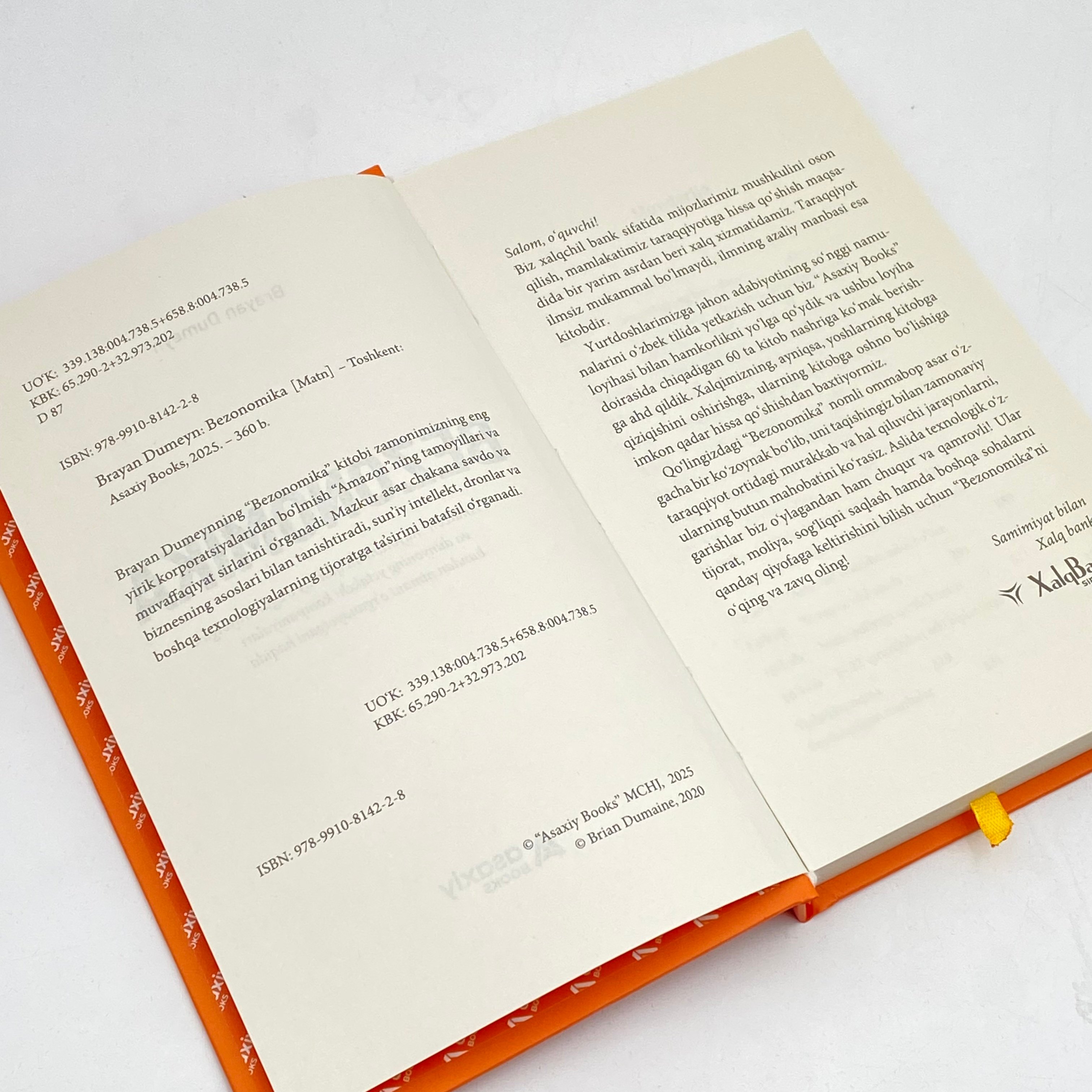 Жефф Безос оддийгина онлайн дўкон яратмади, у замонавий бизнес қоидаларини тубдан ўзгартириб юборди. Бу китоб шунчаки “Amazon” тарихи ёзилган асар эмас, балки сунъий интеллект, катта ҳажмли маълумотлар ва узлуксиз инновациялар бошқарадиган янги иқтисодий даврни таҳлил қиладиган мукаммал қўлланмадир. Китобда муаллиф Браян Дюмейн дунёнинг энг қиммат компанияларидан бири қандай қилиб сунъий интеллект, самарали бошқарув, мижозга эътибор ва узоқ муддатли стратегия орқали муваффақиятга эришганини очиб беради.