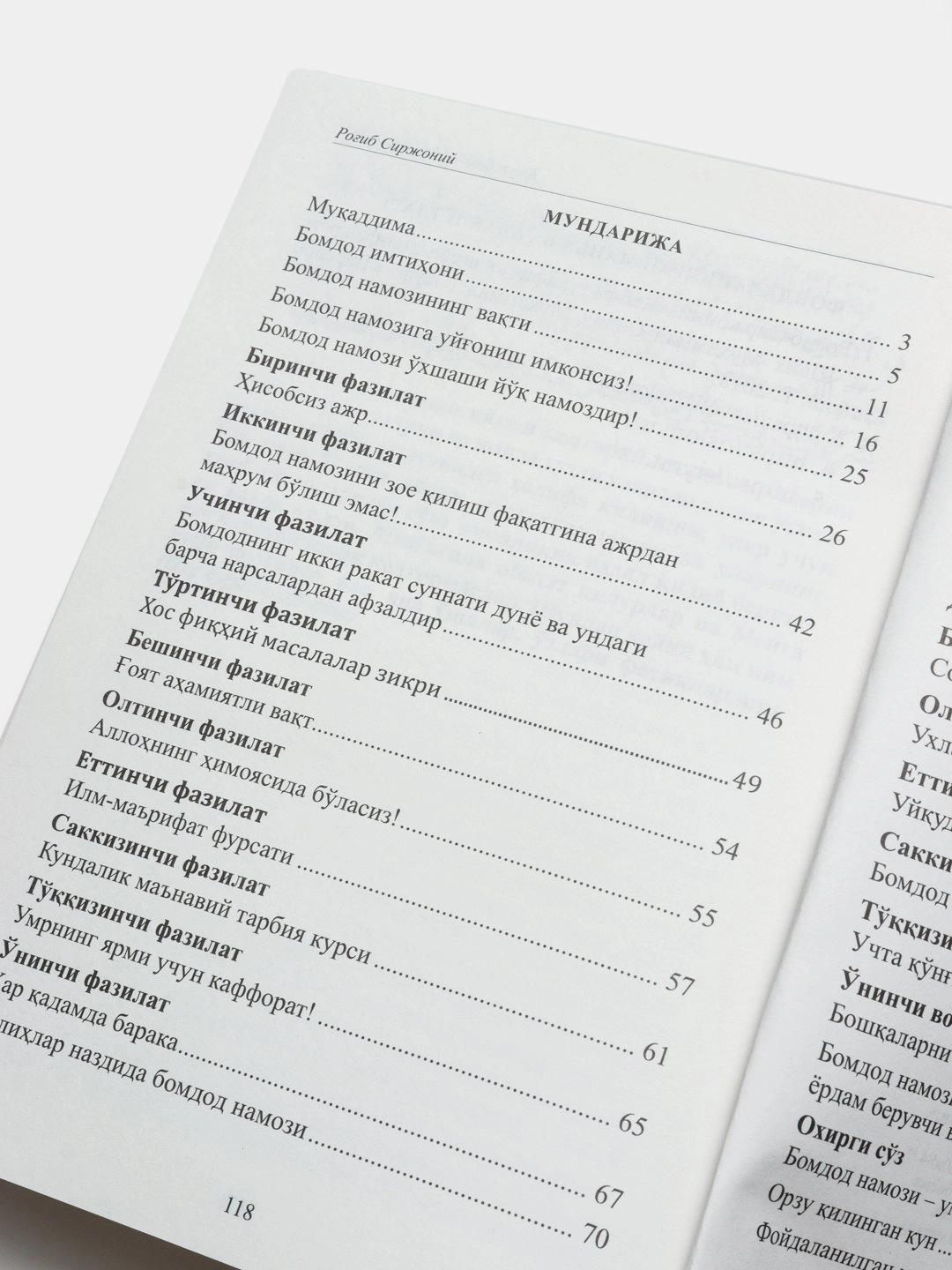 Bir odam oqshom vaqti zavq- shavq bilan Alloh taoloning dinini yoyish va mustahkamlash haqidagi xayollaridan so‘z ochib qoldi. « Musulmonlar qachon Alloh taolo ular uchun murod qilgan mavqega qaytadi?!» deb taajjub aralash, yig‘ilganlarga savol bera boshladi. « Nimaga musulmonlar boshqalarga ergashmoqda? Nima uchun dunyoni dindan ustun qo‘yish- moqda? Nima uchun dushmanlari bilan do‘st tutinishmoqda? Nima uchun!? Nimaga!? » deya savollarni yog‘dirib tashladi. O‘zining chiroyli nutqi bilan yana bir qator savollarni o‘rtaga tashladi. O‘ziga quloq tutganlarning yelkasiga ulkan vazifalarni yuklab tashladi. Tahlil, muqoyasa va xulosalarini batafsil bayon qildi. Ertasiga bomdod namozida uni namozxonlar safidan topa olmadim. O‘zimga o‘zim: « Har qalay biror ishi chikib, kela olmagan bo‘lsa kerak », dedim. Kelasi kuni u yana namozda yo‘q edi. Undan xavotir ola boshladim. Nima bo‘lganini bilishga oshiqdim. Unga rostdan ham biror kor- hol bo‘lgan bo‘lsachi, deya andishalandim. Uni qidira- qidira, axiri topdim. Shoshgancha « Nima bo‘ldi, tinchlikmi? Yaxshilikkami? Seni bomdod namozida uchratmadim? » deb so‘radim. Menga bemalol va hech xijolat chekmay: « Meni maʼzur ko‘rasan, birodarim. Alloh taolo meni ham, seni ham mag‘firat qilsin. Mening vaziyatim og‘ir. Ishim erta kunda boshlanadi. Kechasi juda kech uxlayman. Alloh taolo kechirguvchi Zot! » deb javob berdi. Uning so‘zlari qarshisida dong qotdim. Hayratda qoldim. O‘zimga o‘zim savol berdim: « Qanday qilib Alloh azza va jallaning farzlaridan biriga beparvolik qilgan holda Allohning dinini mustahkamlashni orzu qilish mumkin!? » Qalbimda bir g‘alayon his qila boshladim. Nafasim siqilib, tomog‘im bo‘g‘ildi. Nimadir qilishni istadim. Nima qilsam ekan, deya mana shu kitobni qalamga oldim. O‘zimga, sizlarga va qolgan barcha musulmonlarga Alloh taolodan hidoyat so‘rayman, dinimizni aziz va mustahkam qilsin. U bunga qodir bo‘lgan Zotdir.