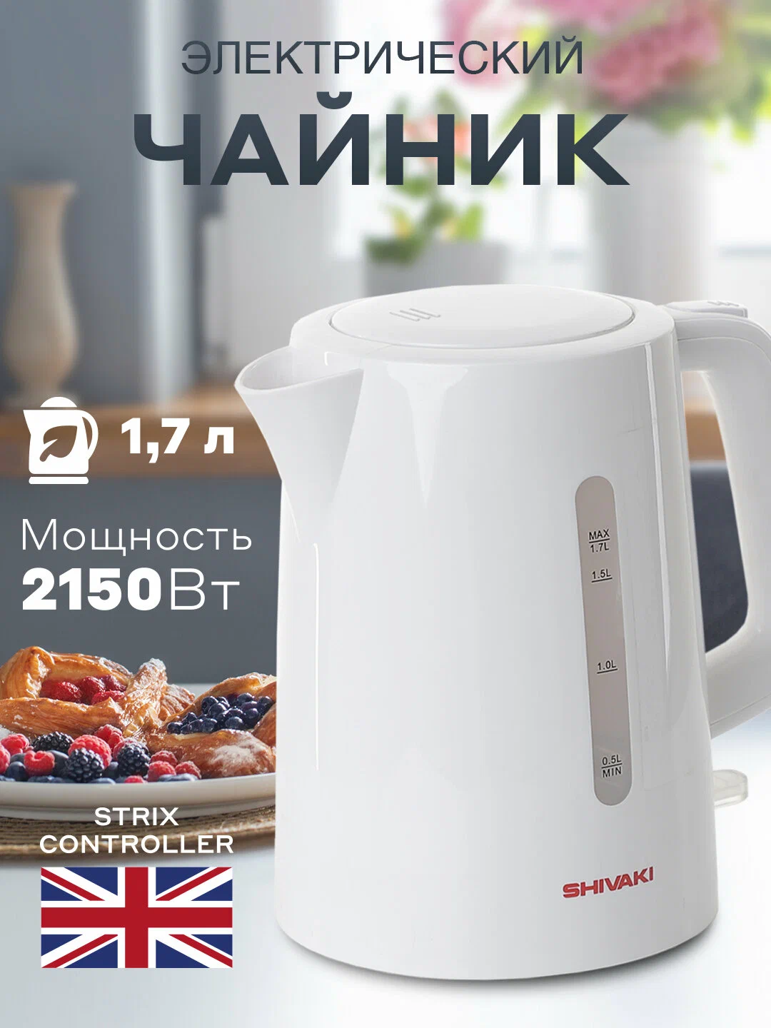 С мощностью от 1800 до 2150 Вт и максимальным объёмом 1,7 литра, чайник быстро доводит воду до кипения, экономя ваше время и энергию.