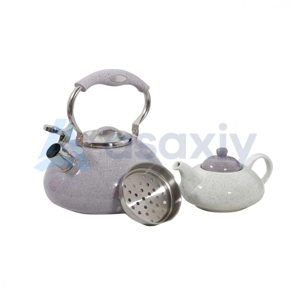 В состав набора входят: чайник стальной эмалированный 3л с деревянной ручкой и крышкой с деревянной ручкой + заварочный чайник с крышкой (заварник) керамический 750мл.