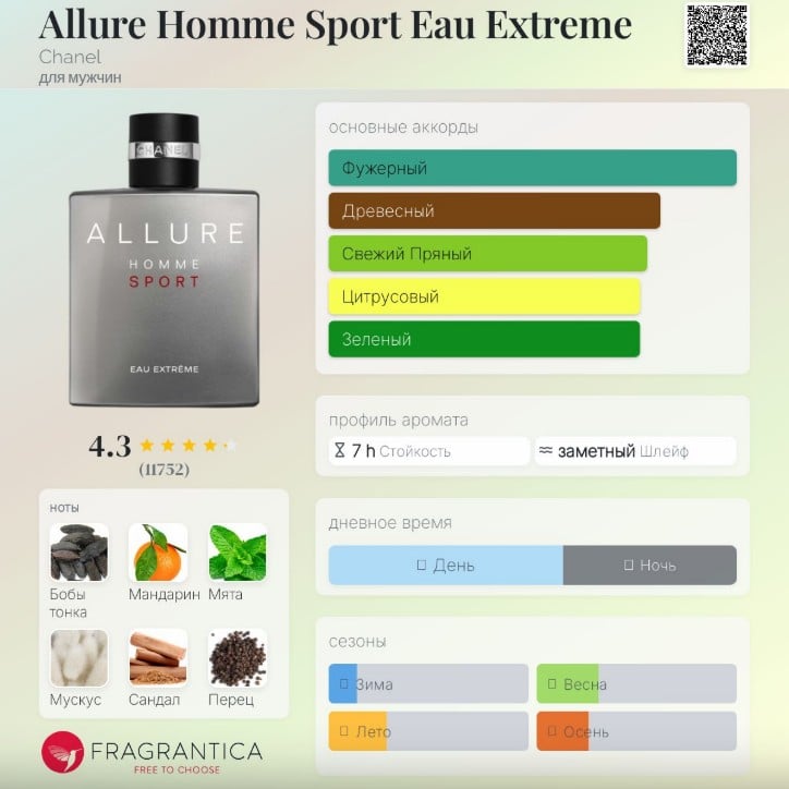Allure Homme Sport Eau Extreme (аналог) максимально приближен к оригинальному звучанию Chanel Allure Homme Sport Eau Extreme.