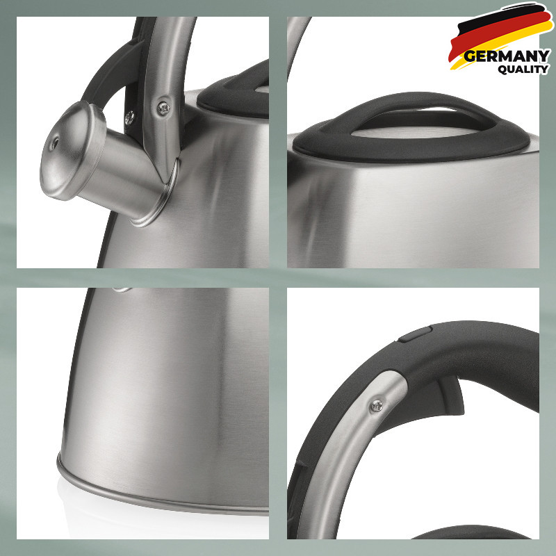 • Свисток, который сообщает о закипании — удобство, внимание к деталям и уверенность в безопасности.