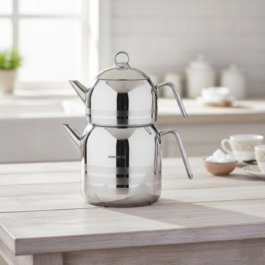 Korkmaz Largo A199 — bu xushbo‘y turk choyini sevuvchilar uchun yaratilgan nafis va amaliy choynak to‘plami. U zamonaviy dizayn, ishonchlilik va katta hajmni birlashtiradi, bu esa uni oila davrasidagi choy ichishlar yoki mehmon kutish uchun ideal tanlovga aylantiradi.