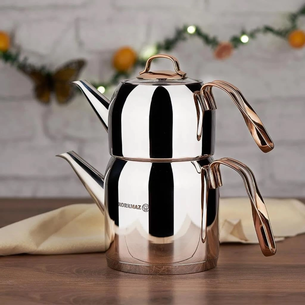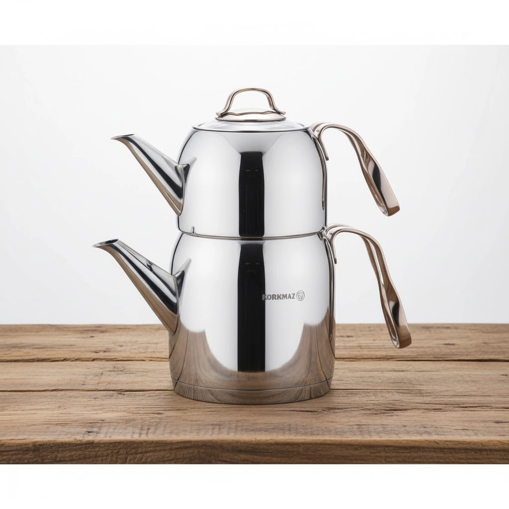 Korkmaz Rosanna A192 — bu an’anaviy turk choy ichish marosimini qadrlovchilar uchun yaratilgan uslubli va ishonchli choynak to‘plami. U nafis dizayn, bardavom materiallar va qulay foydalanishni birlashtirib, choy damlash jarayonini chinakam marosimga aylantiradi.