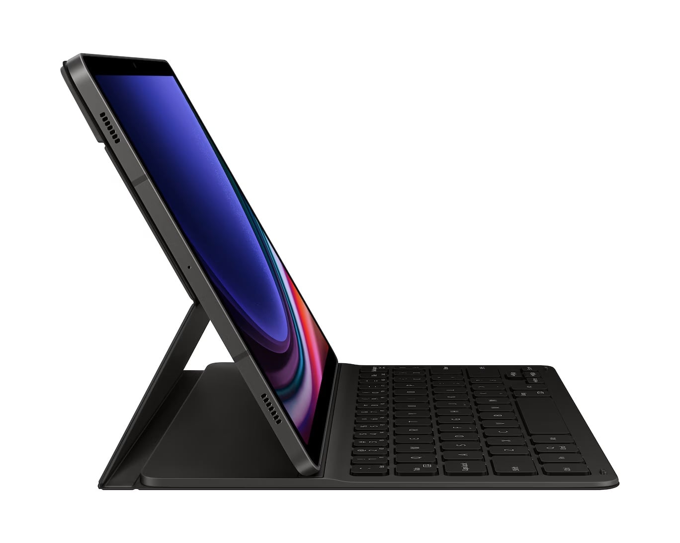 Встроенная подставка фиксирует планшет под оптимальным углом для комфортного просмотра видео и работы с документами. Слоты для S Pen позволяют хранить электронное перо под рукой и безопасно. Чехол поддерживает возможность ввода текста на сопряжённых устройствах, а функция автоматического включения и выключения экрана экономит заряд батареи.