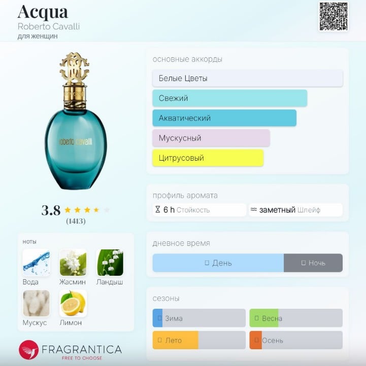 • Данный продукт является аналогом аромата Acqua от Roberto Cavalli и не относится к продукции оригинального бренда.