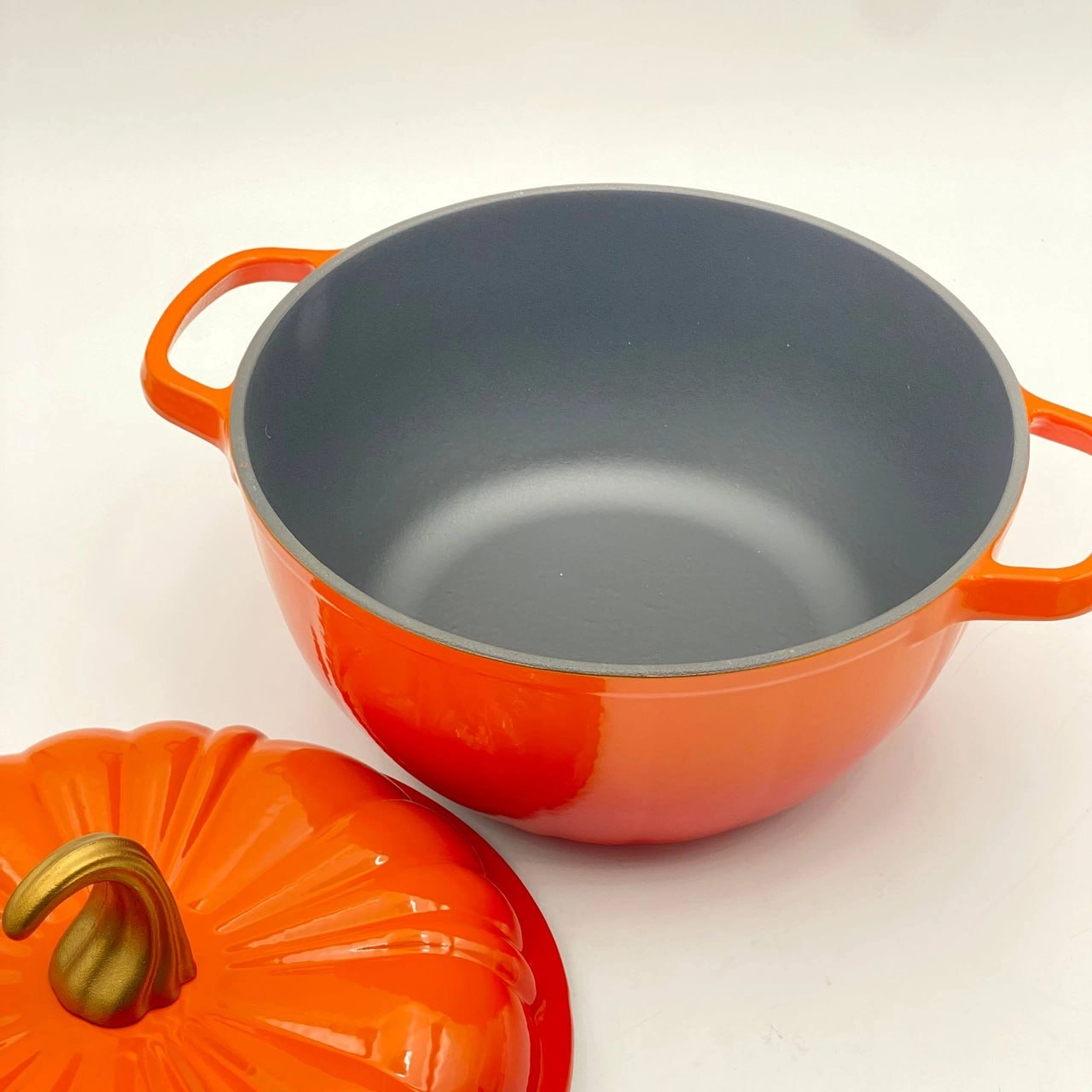 Чугунная эмалированная кастрюля 7л, Тыква, Оранжевый