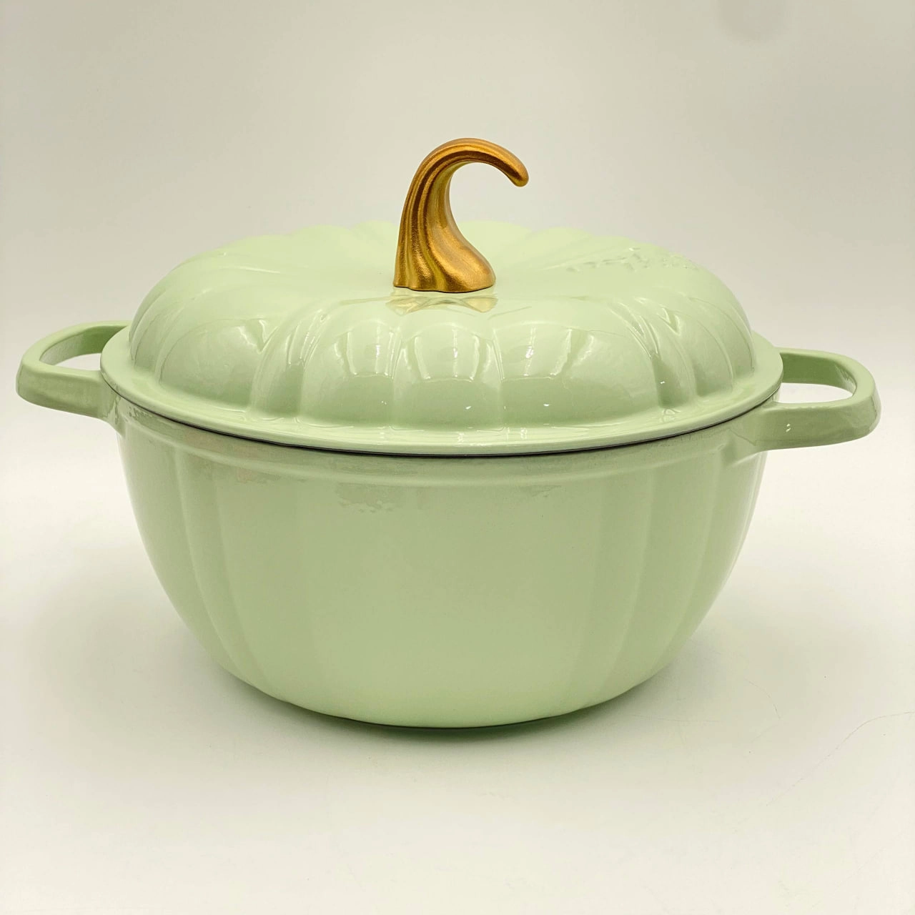 Чугунная эмалированная кастрюля 7л, Тыква, Зелёный