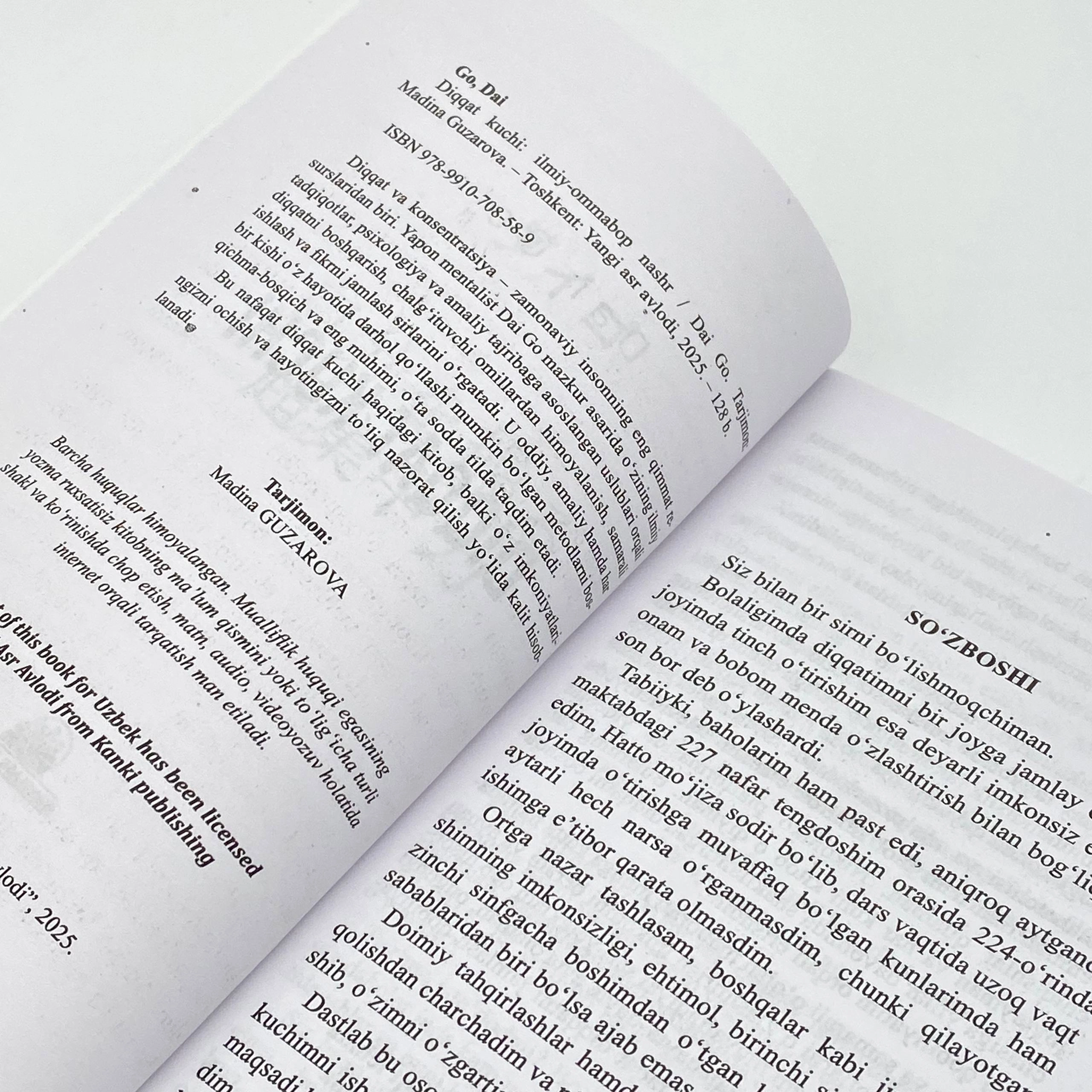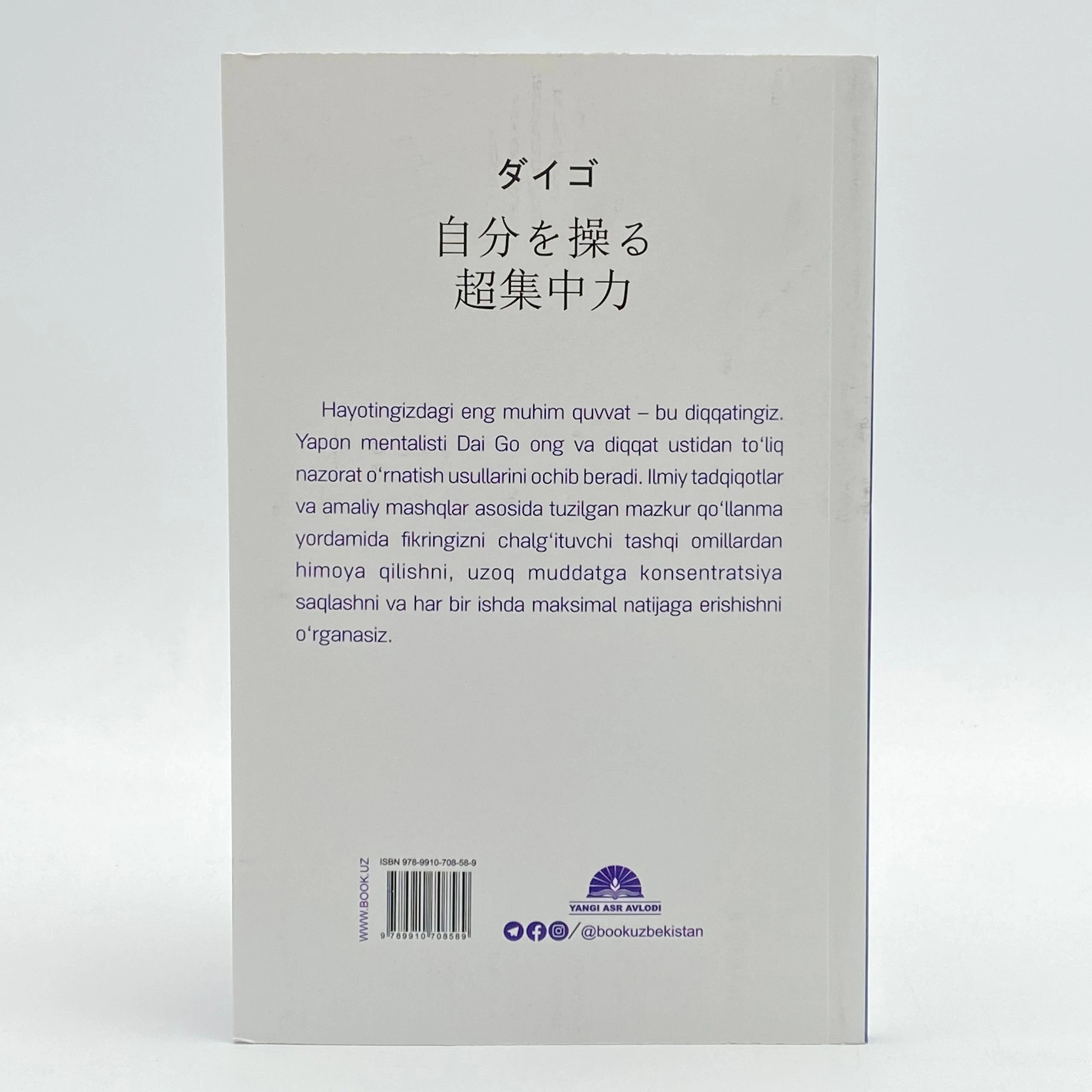 Yapon mentalist Dai Go mazkur asarida o'zining ilmiy tadqiqotlar, psixologiya va amaliy tajribaga asoslangan uslublari orqali diqqatni boshqarish, chalg'ituvchi omillardan himoyalanish, samarali ishlash va fikrni jamlash sirlarini o'rgatadi.