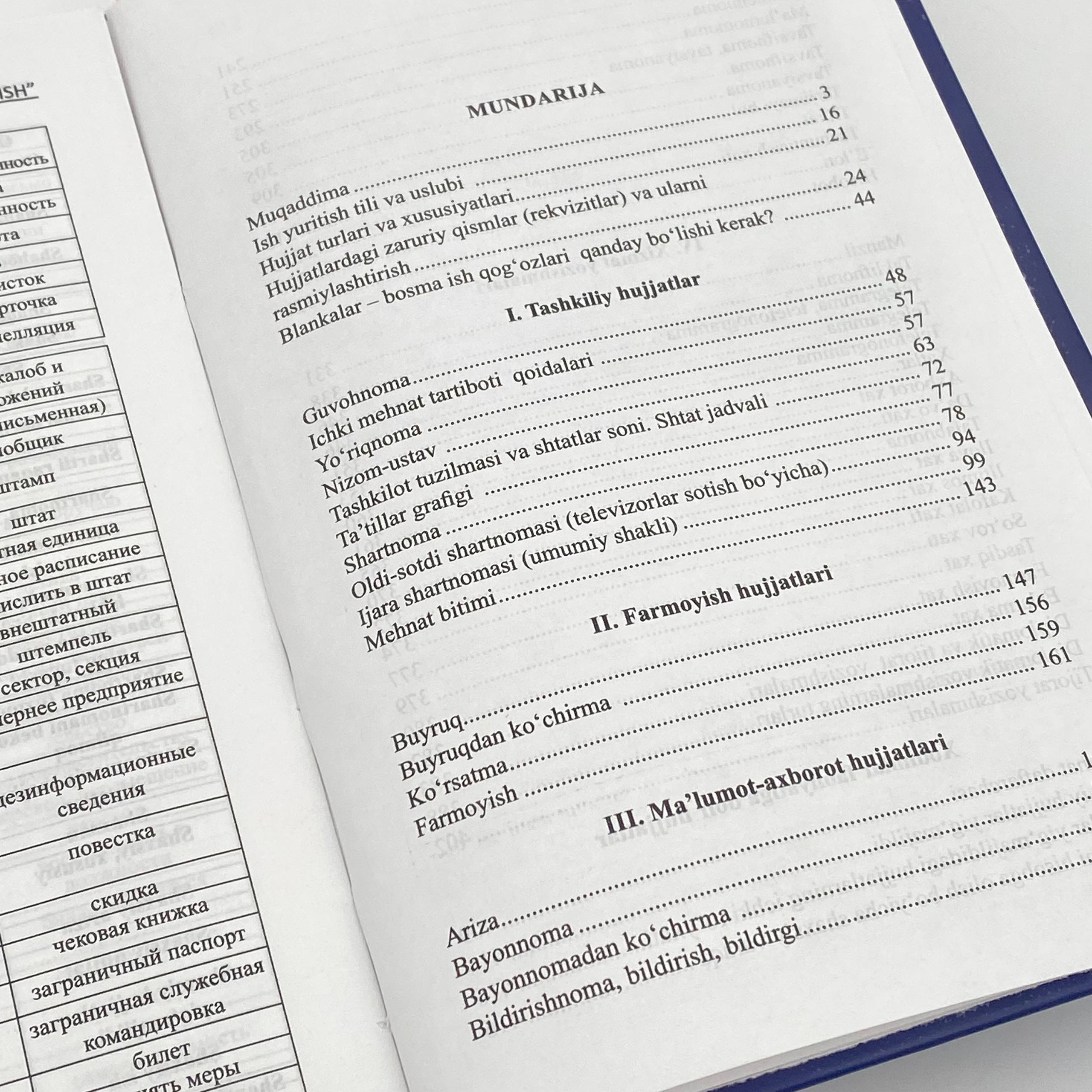 1 год гарантии от производителя Примем товары в течении 10 дней и сразу вернём деньгиУшбу қўлланмада ташкилот ва муассасаларнинг иш юритиш фаолиятида энг ко п қо лланадиган ҳужжатлар, уларни тузиш тартиб-қоидалари масалаларига тўхтаб ўтилди, уларга доир намуналар кўрсатилди, иш юритишга оид луғат берилди. Қўлланма, биринчи навбатда, ташкилотлар раҳбарлари ва ходимларига, бошқарув фаолиятида бевосита ҳужжат устида ишловчилар, котиб-референтлар, кадр хизмати ходимларига мўлжалланган, шунингдек, ундан ҳисобчилар, адлия маслаҳатчилари, аудитор, менежерлар ҳам фойдаланишлари мумкин.