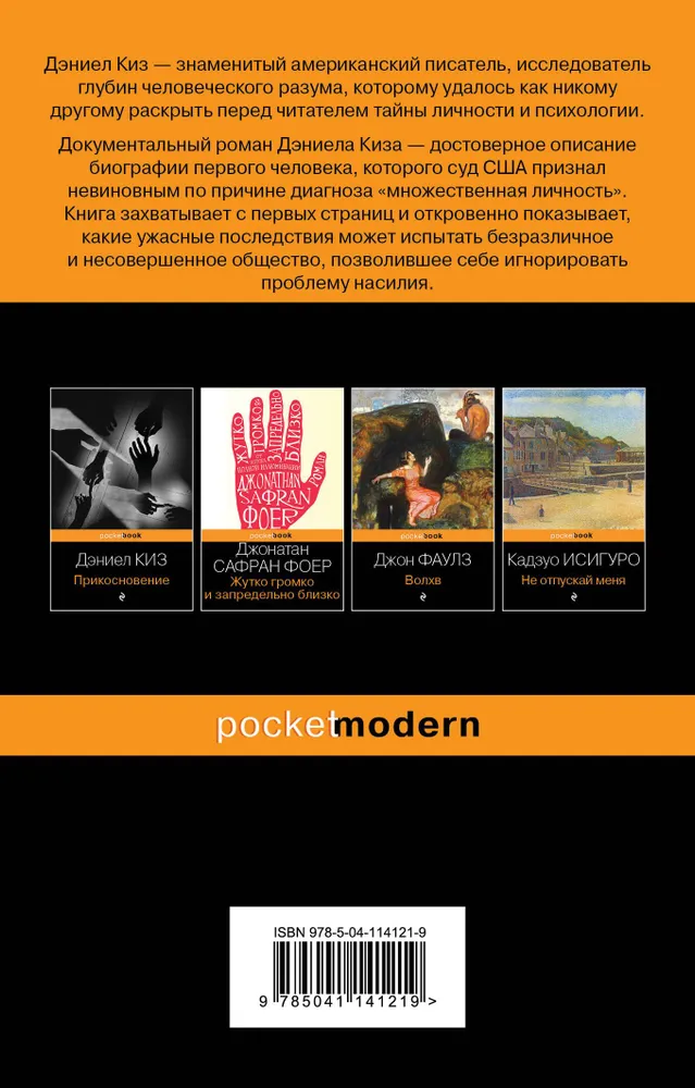 Литература давно пыталась проникнуть в разум человека. Но как понять того, в ком уживаются 24 личности? И как разобраться, кто главный в этом множестве сознаний? С кем ты общаешься в данный момент? Только мастер психологической прозы способен распутать такой лабиринт сознания и помочь Билли Миллигану объединить все личности в одну, стать самим собой. Возможно ли такое? Документальный роман Дэниела Киза — достоверное описание биографии первого человека, которого суд США признал невиновным по причине диагноза «множественная личность». Проведенное расследование жизни одного из самых известных людей в истории психиатрии, несмотря на тяжесть совершенных им преступлений, в конечном итоге вызвало понимание и сочувствие как среди тех, кто близко познакомился с Билли, так и тех, кто лишь читал о нем в газетах. Книга захватывает с первых страниц и откровенно показывает, какие ужасные последствия может испытать на себе безразличное и несовершенное общество, позволившее себе игнорировать проблему насилия.