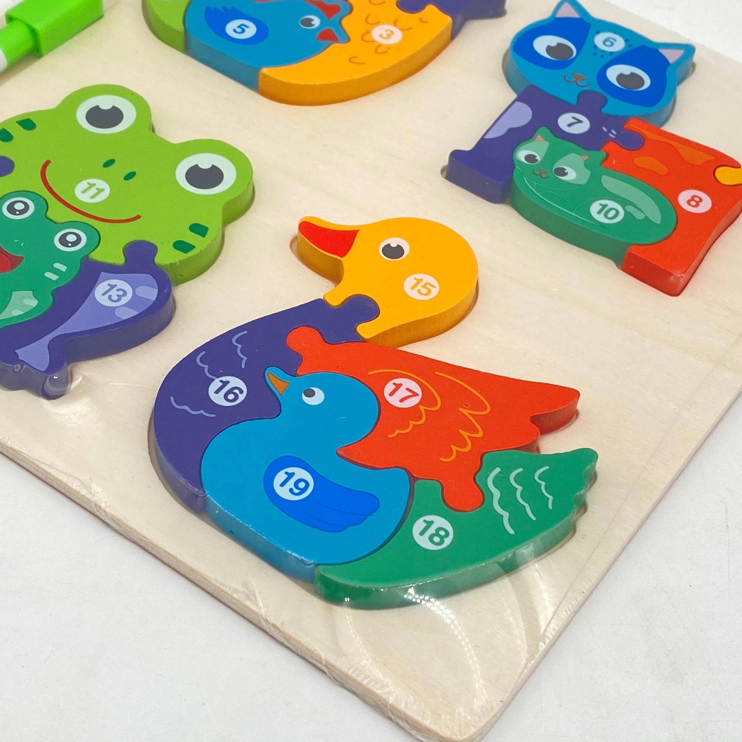 Taxta pazl: Tovuq, mushuk, qurbaqa, o'rdak