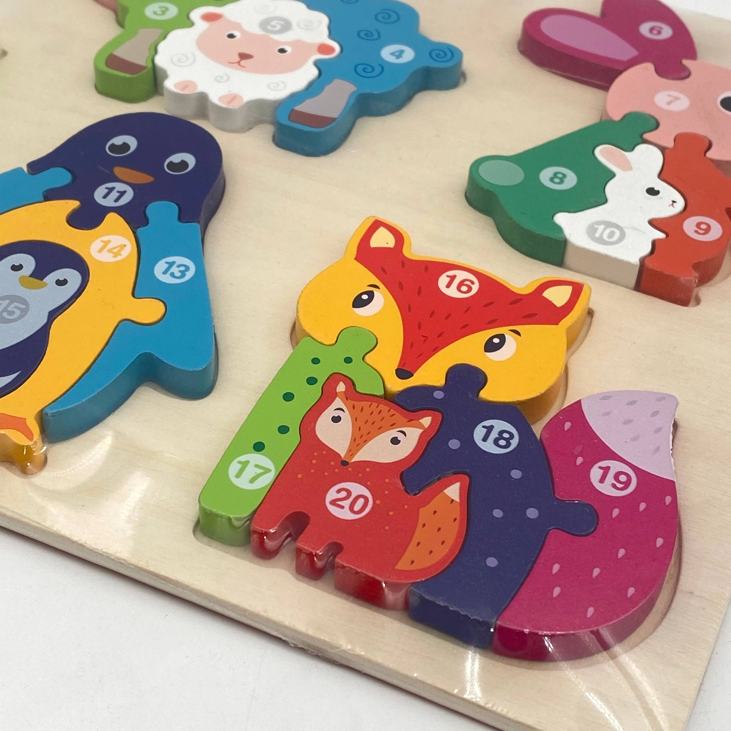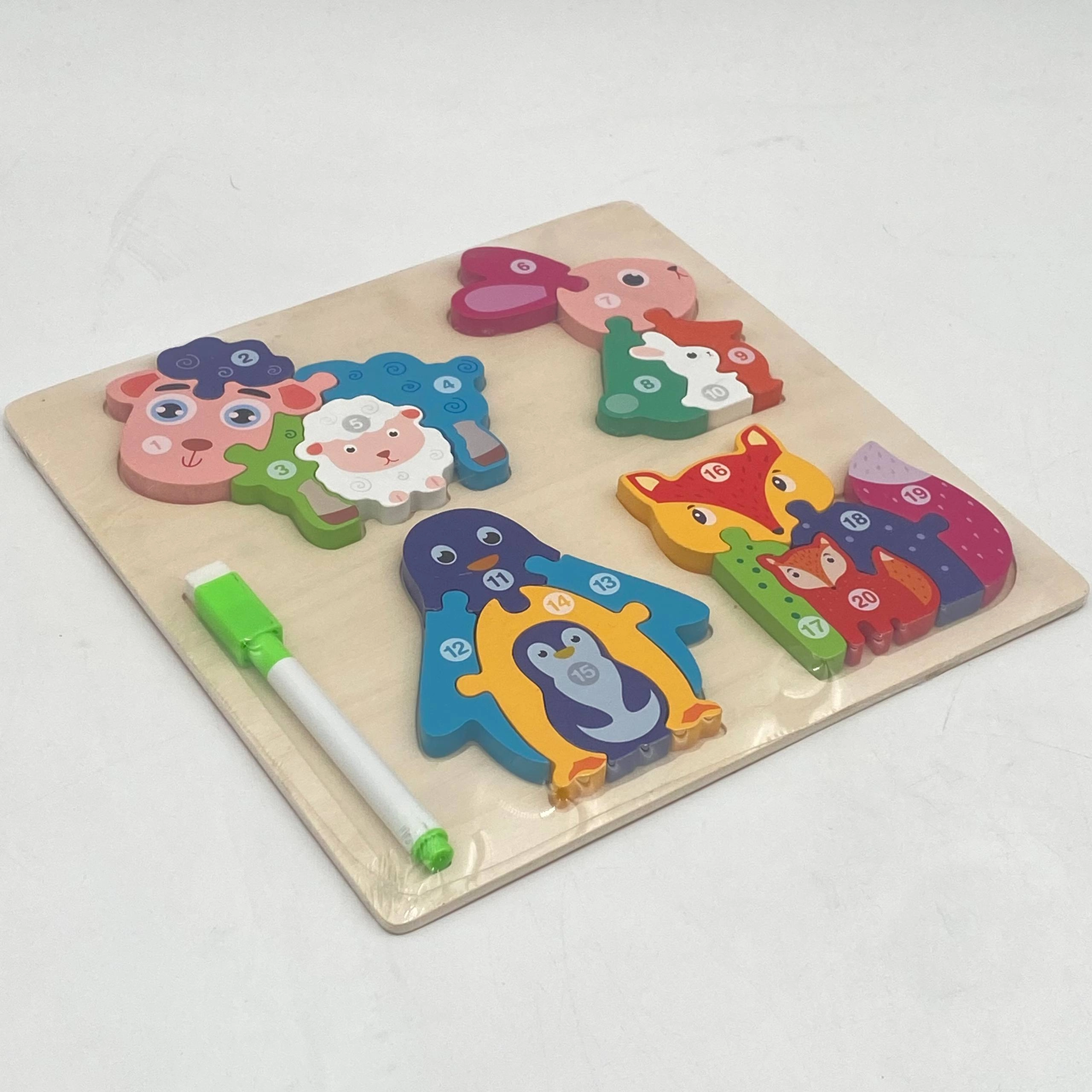 Taxta pazl: Qo'y, quyon, pingvin, tulki