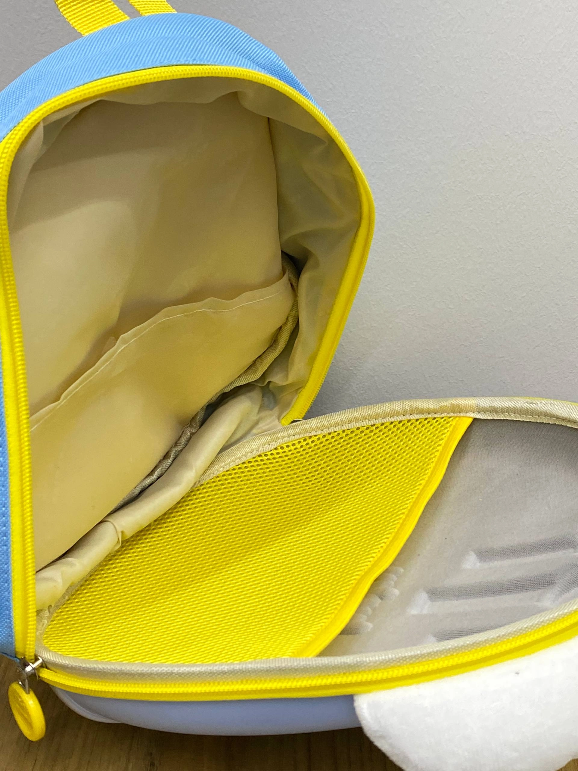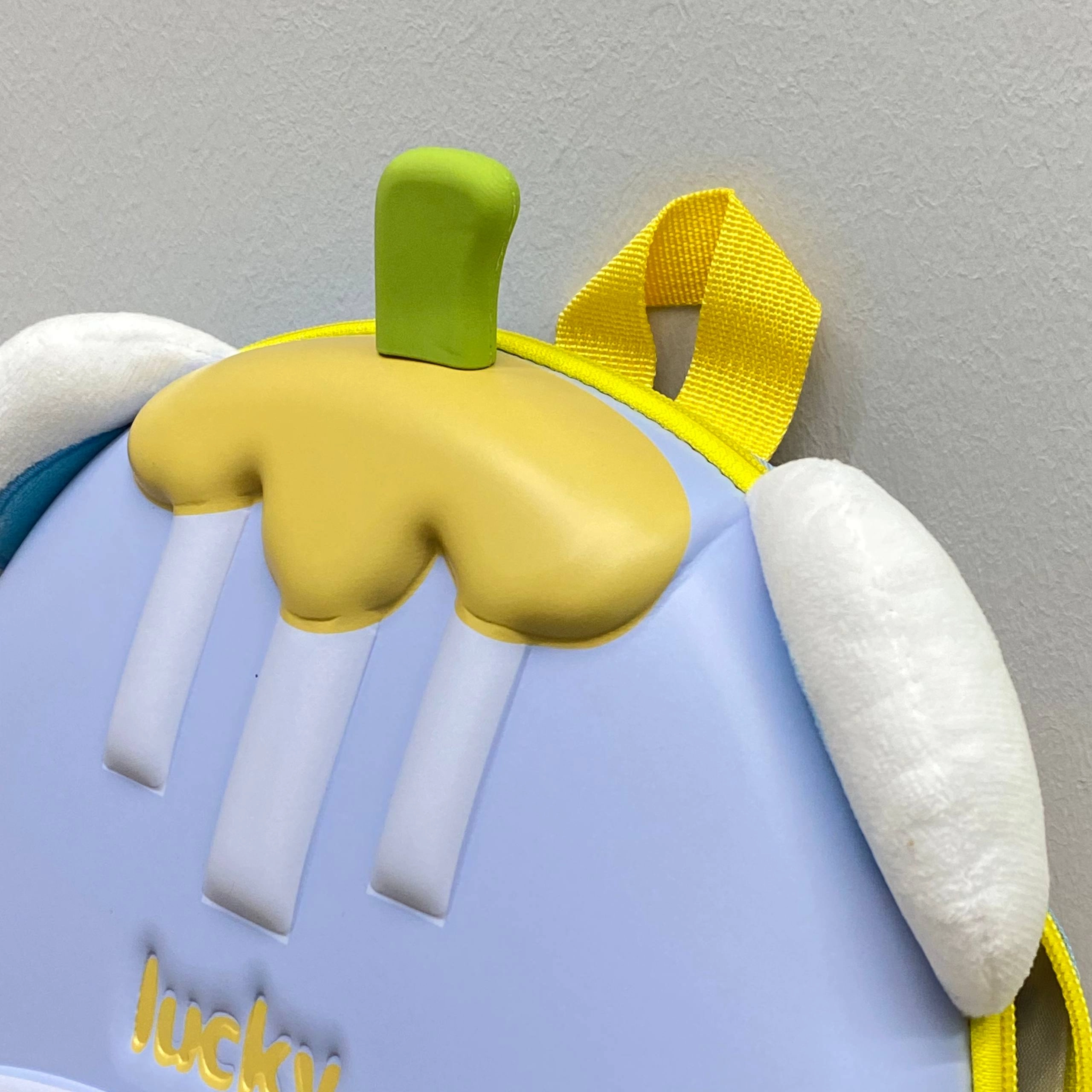 Yoqimli dizayndagi bolalar ryukzaki — kundalik foydalanish uchun qulay va yengil. O‘ziga xos shakli va rang-barang ko‘rinishi bolalarga quvonch ulashadi hamda ularning kiyim uslubiga o‘zgacha joziba qo‘shadi. Yumshoq, bardoshli materialdan tayyorlangan bo‘lib, ichki bo‘limlari o‘quv qurollari yoki kichik o‘yinchoqlarni joylashtirish uchun qulay.