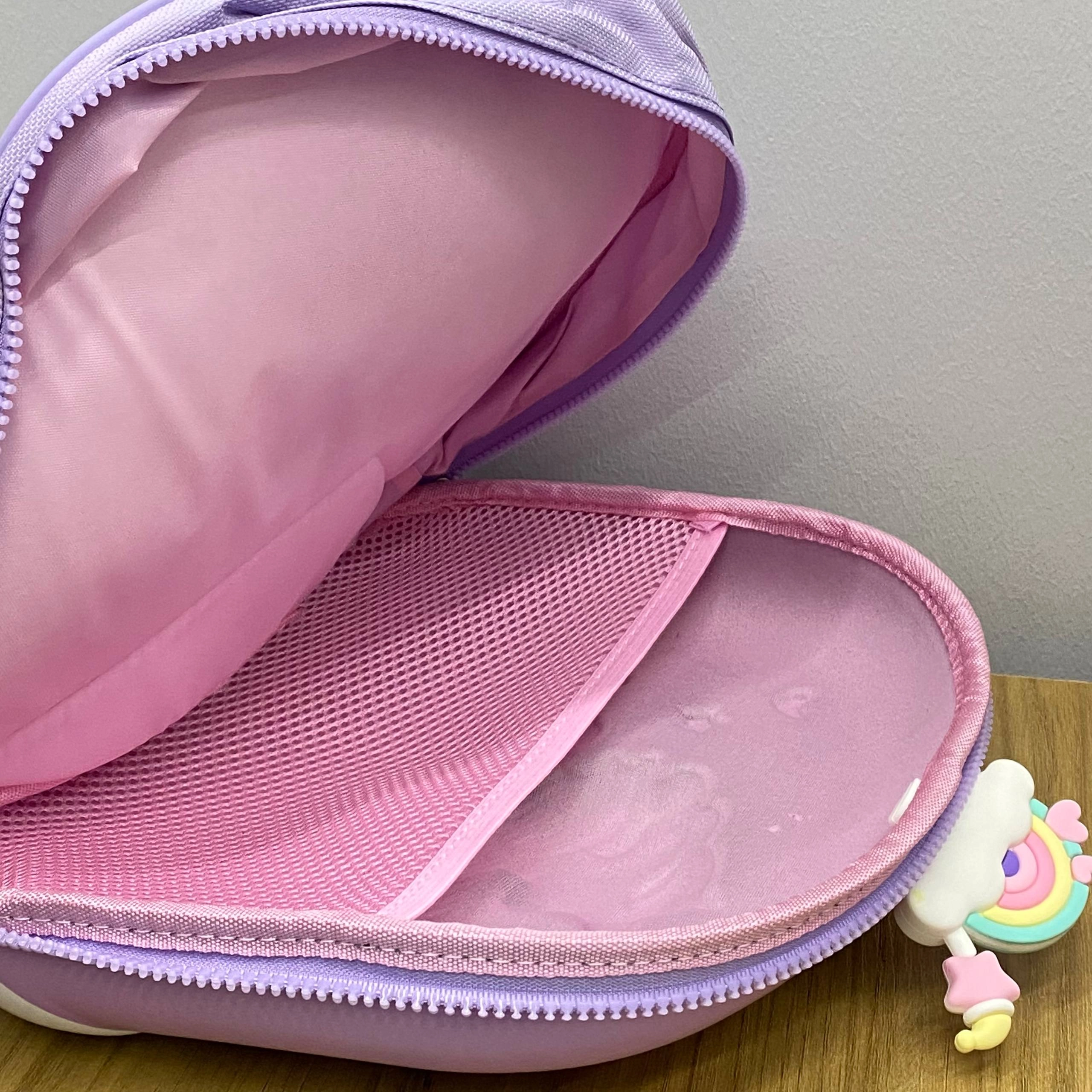 Yoqimli dizayndagi bolalar ryukzaki — kundalik foydalanish uchun qulay va yengil. O‘ziga xos shakli va rang-barang ko‘rinishi bolalarga quvonch ulashadi hamda ularning kiyim uslubiga o‘zgacha joziba qo‘shadi. Yumshoq, bardoshli materialdan tayyorlangan bo‘lib, ichki bo‘limlari o‘quv qurollari yoki kichik o‘yinchoqlarni joylashtirish uchun qulay.