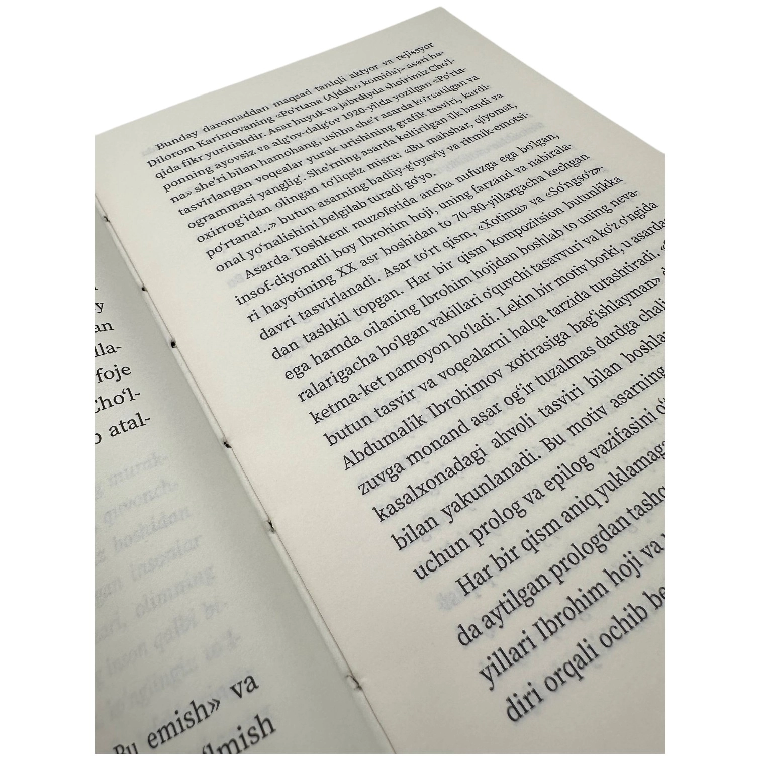 Qo'lingizdagi kitobni insoniyat tarixidagi eng shonli va eng murakkab davr-XX asrning bir oila hayotida aks etgan qayg'ulari, quvonchlari solnomasi deyish mumkin. O'tgan yuzyillikda xalqimiz boshidan kechirgan yirik va mudhish voqea-hodisalar alohida olingan insonlar taqdiri misolida rejissyorning nigohi, yozuvchining nazari, olimning tahlili, faylasufning mushohadasi... eng muhimi, cho'ng inson qalbi bilan badiiy idrok etilgan. Kitobni mutolaa qilarkansiz, ko'nglingiz to'lqinlanib, ko'zingiz yolqinlanib, shuuringiz sergaklanib, tafakkuringiz tiniqlashib boradi. O'zingizga, umringizga va hayotingizga boshqacha rakursdan boqasiz. Biz bunga ishonamiz!