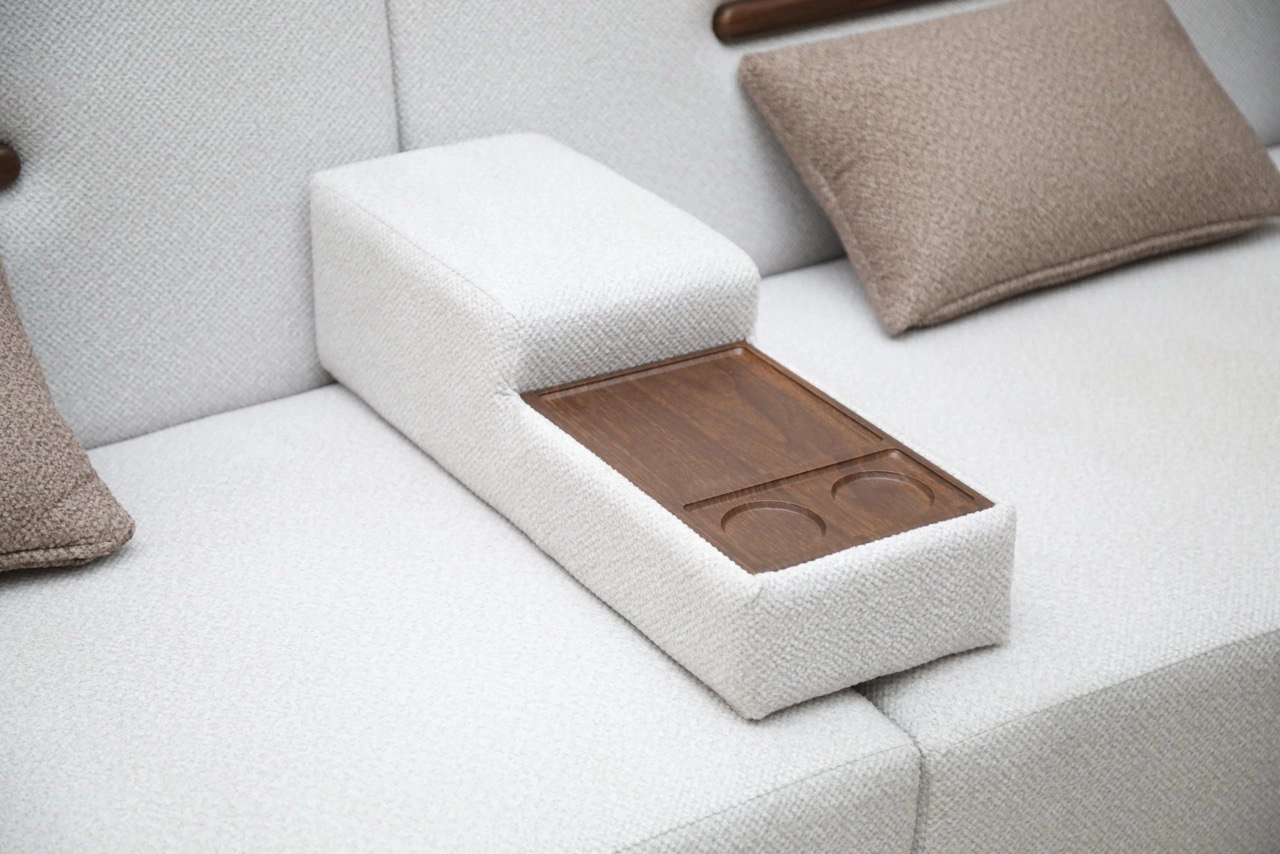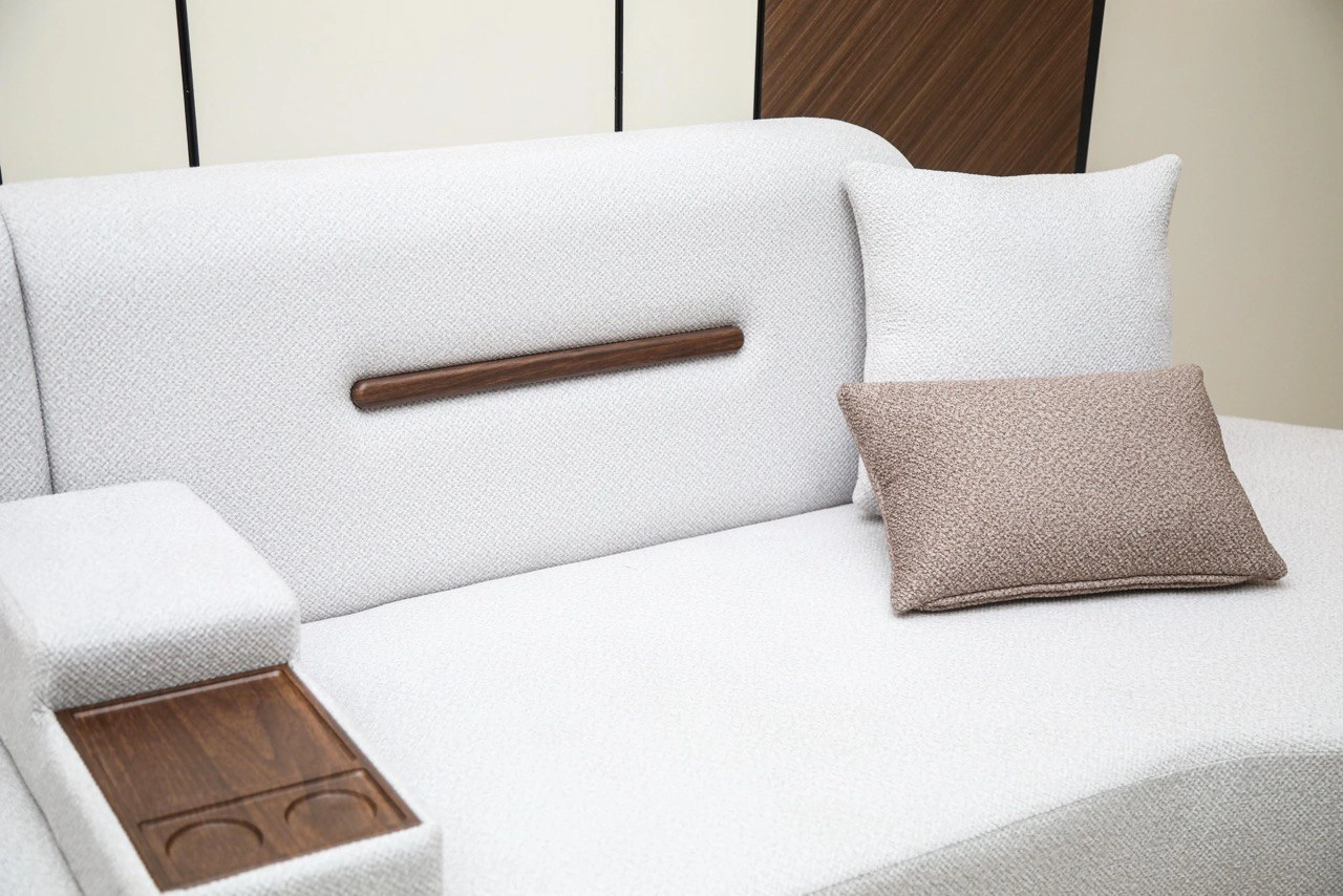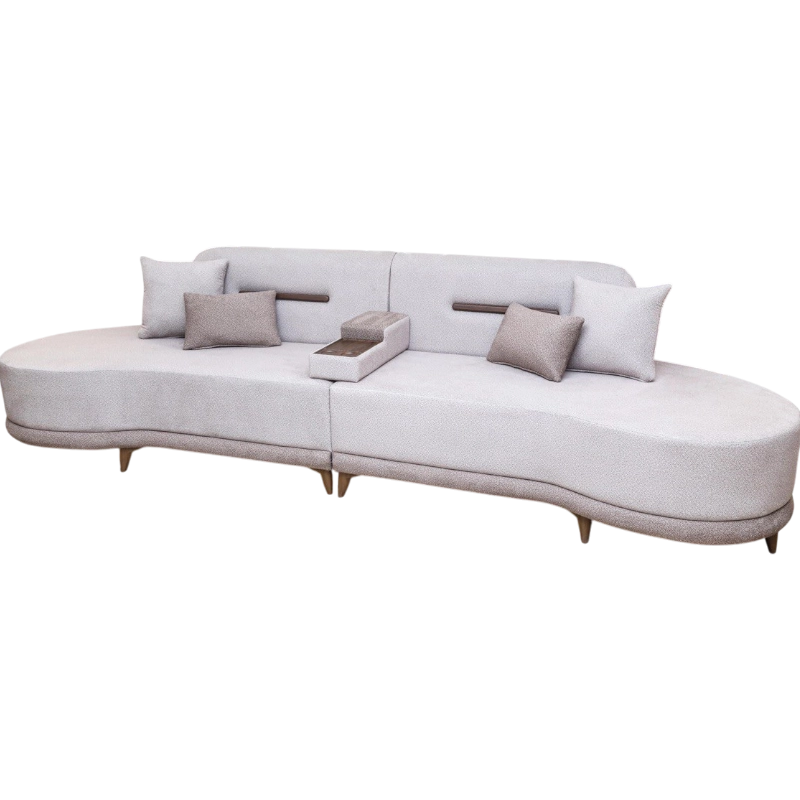 Divan dub, oq va fantom rang kombinatsiyasida ishlangan. Mustahkam ramka va yumshoq to‘ldirish konstruktsiyaga barqarorlik va uzoq muddat xizmat qilish imkonini beradi. Katta o‘lchamli divan butun oila uchun qulay dam olish maydonini taqdim etadi.