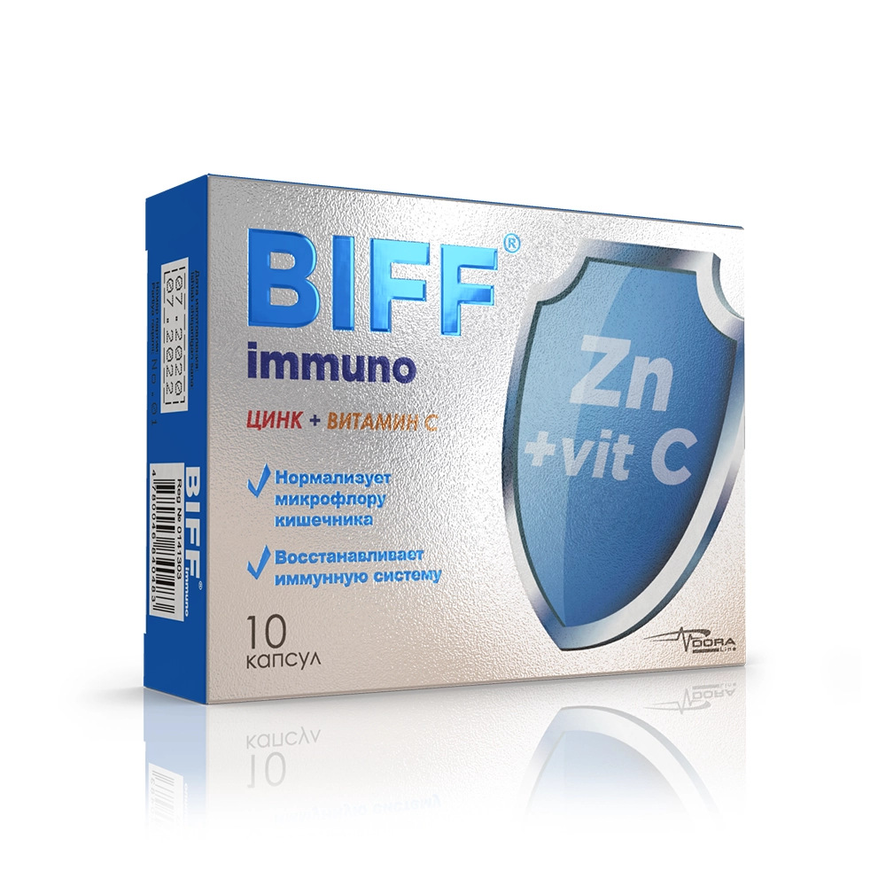 Бифф иммуно - бактерии обладают способностью восстанавливать и поддерживать физиологический баланс кишечной микрофлоры. Бифидобактерии и Лактобактерии, продуцируя молочную и уксусную кислоту, создают неблагоприятные условия для размножения и жизнедеятельности патогенных микроорганизмов. Активно участвует в синтезе витаминов и обмена веществ в организме.