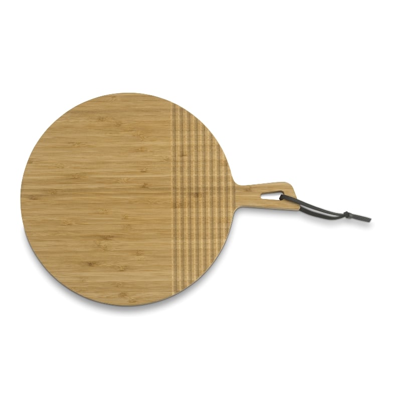 • Круглая форма с ручкой — удобно держать и переносить, доска легко становится декоративным элементом на кухне.