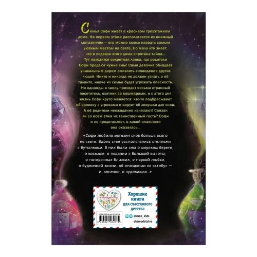 Семья Софи живёт в красивом трёхэтажном доме, на первом этаже которого располагается уютный книжный магазинчик. Но мало кто знает, что в подвале этого дома спрятана тайна… Тут находится секретная лавка, где родители Софи продают чужие сны. Однажды в лавку приходит очень странный посетитель, охотник за кошмарами, и с этого дня жизнь Софи переворачивается с ног на голову. Кто-то подбрасывает ей записку с угрозами, а её родители… неожиданно исчезают! Связан ли с этим их таинственный гость? Софи и не догадывается, в какой опасности она оказалась…
