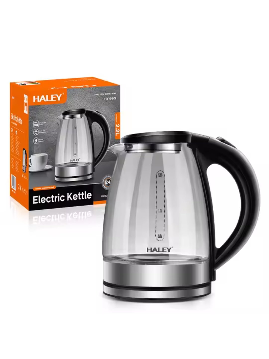 Электрический чайник Haley HY-8861, черный, прозрачный