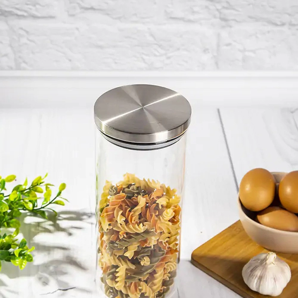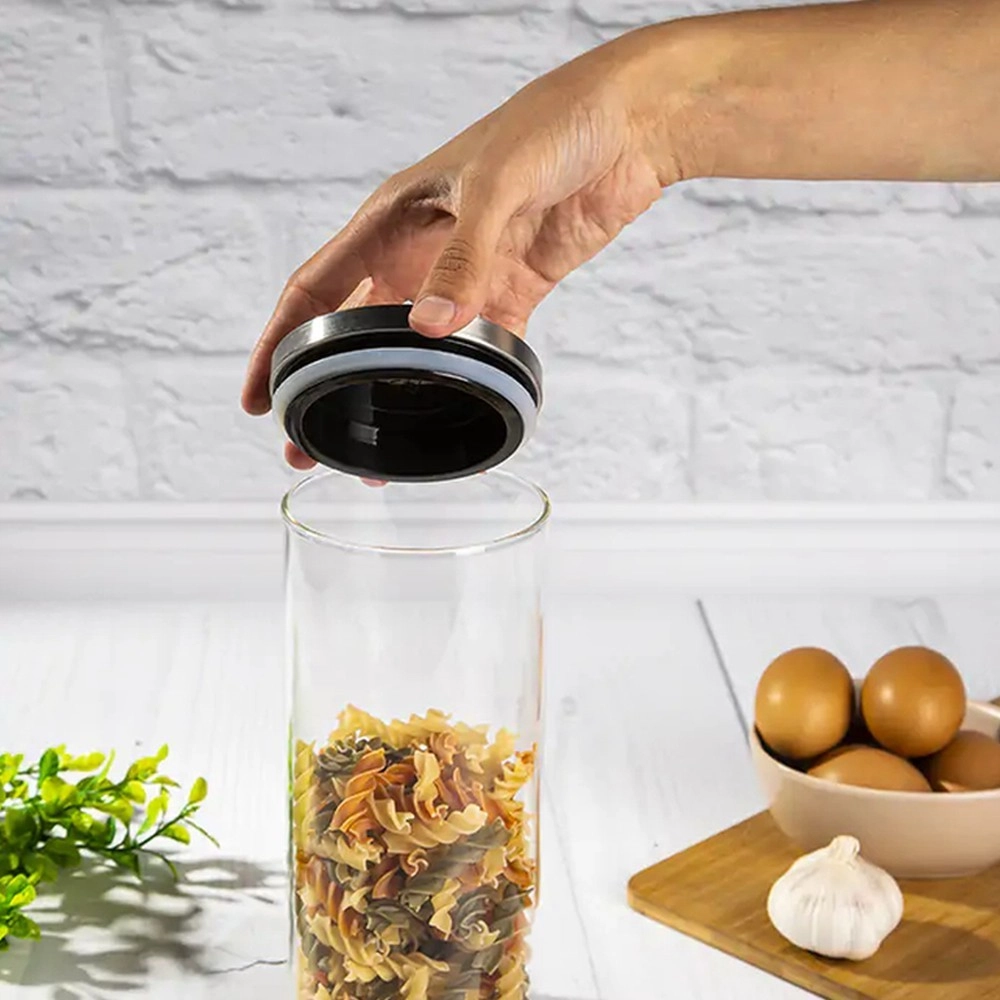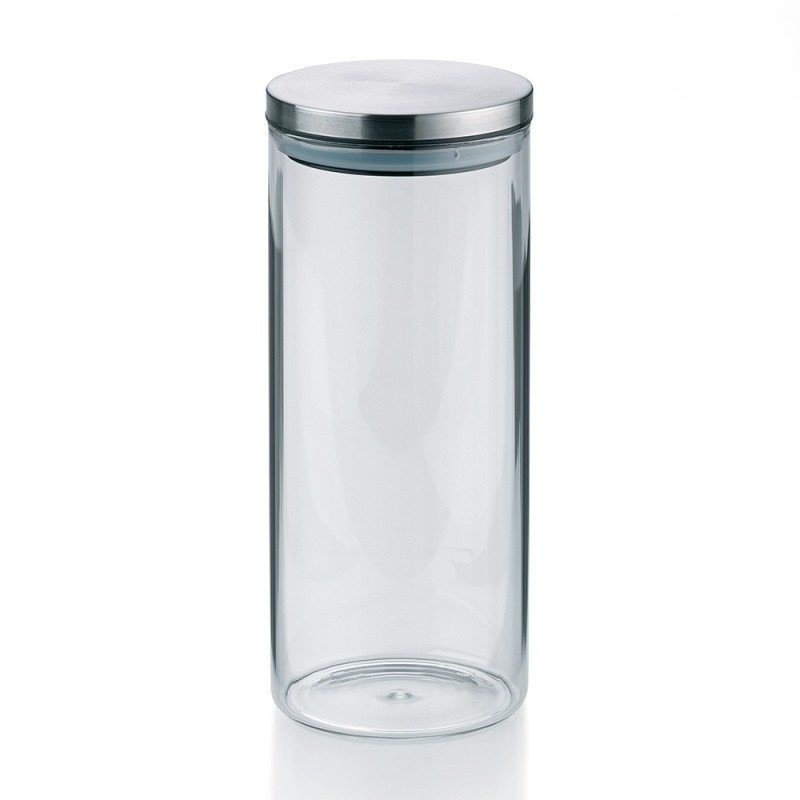 Корпус изготовлен из прочного прозрачного стекла, позволяющего легко контролировать содержимое. Крышка выполнена из нержавеющей стали 18/10 и снабжена силиконовым уплотнителем, который обеспечивает полную герметичность и защиту от влаги, сохраняя свежесть продуктов.
