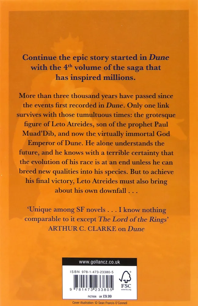 Book Four in the Magnificent Dune Chronicles—the Bestselling Science Fiction Adventure of All TimeMillennia have passed on Arrakis, and the once-desert planet is green with life. Leto Atreides, the son of the world’s savior, the Emperor Paul Muad’Dib, is still alive but far from human. To preserve humanity’s future, he sacrificed his own by merging with a sandworm, granting him near immortality as God Emperor of Dune for the past thirty-five hundred years.Leto’s rule is not a benevolent one. His transformation has made not only his appearance but his morality in human. A rebellion, led by Siona, a member of the Atreides family, has risen to oppose the despot’s rule. But Siona is unaware that Leto’s vision of a Golden Path for humanity requires her to fulfill a destiny she never wanted—or could possibly conceive....
