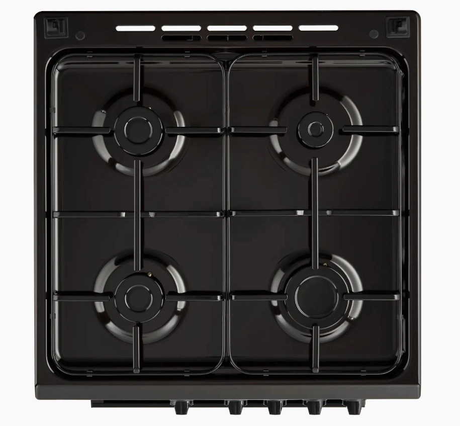 Варочная поверхность включает 4 газовые горелки, обеспечивающие равномерное распределение пламени и удобство приготовления нескольких блюд одновременно. Экокерамическое покрытие повышает устойчивость поверхности к загрязнениям и облегчает уход, сохраняя аккуратный внешний вид плиты.