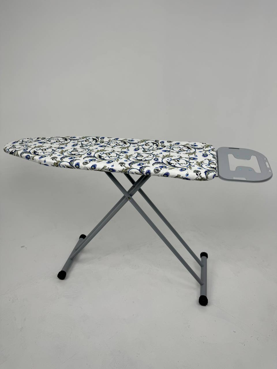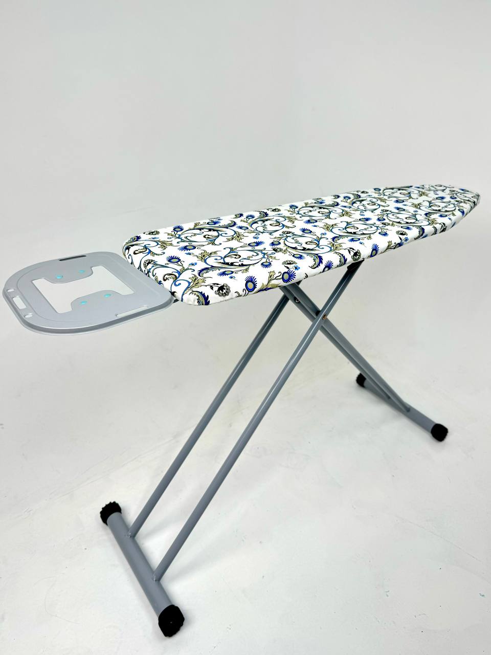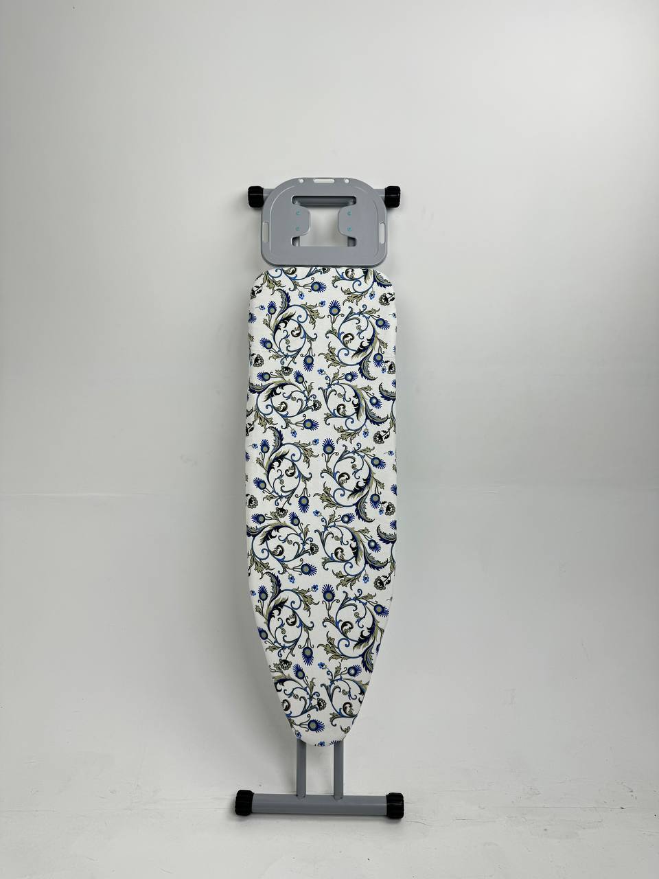Каркас выполнен из качественного металла, устойчивого к коррозии, механическим повреждениям и постоянным нагрузкам. Опоры доски снабжены противоскользящими накладками, предотвращающими скольжение и обеспечивающими надёжную фиксацию на полу.